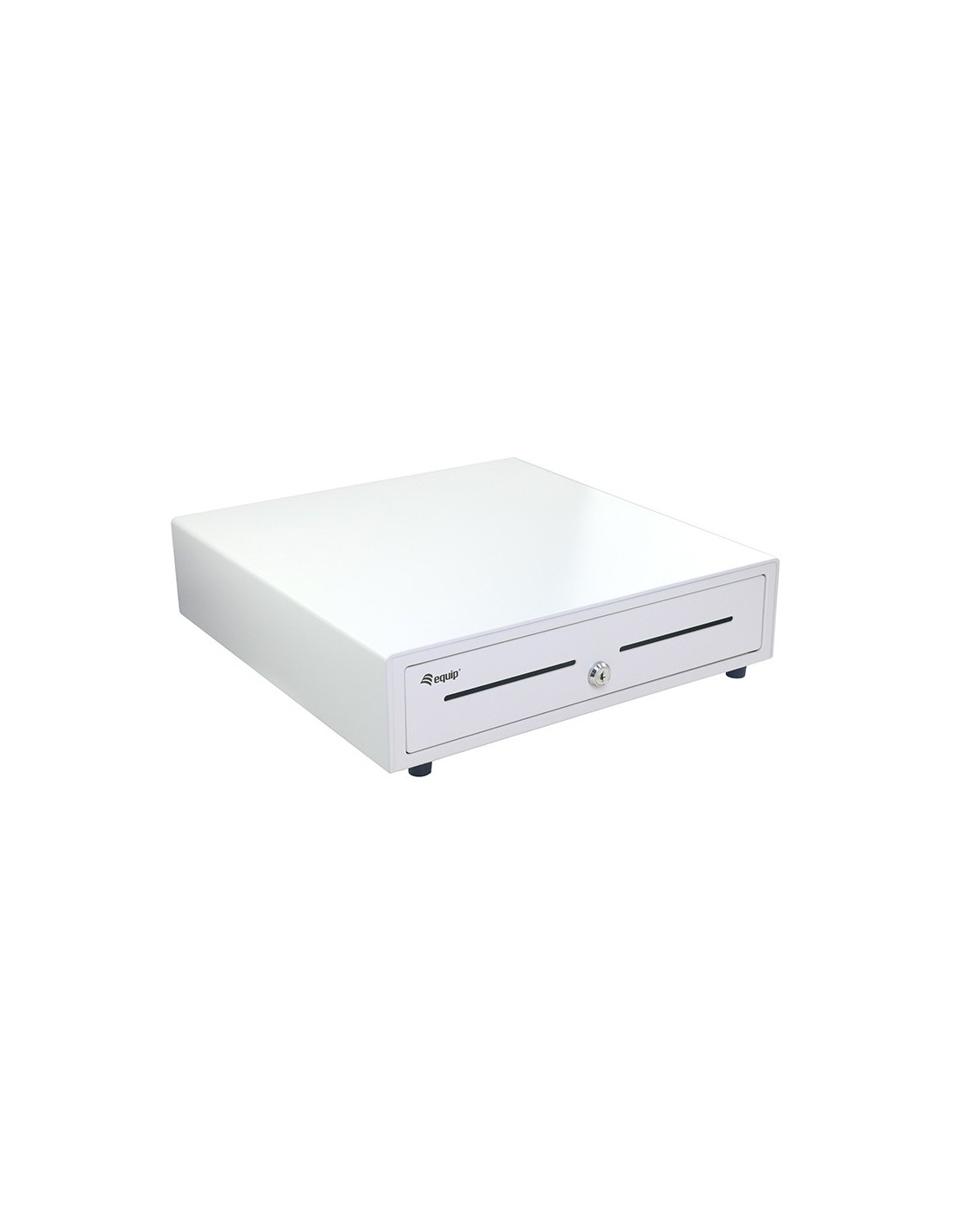 Equip 351011. Tipo di prodotto: Cassetto di cassa manuale e automatico, Materiale della scocca: Metallo, Colore del prodotto: Bianco. Larghezza: 420 mm, Profondità: 405 mm, Altezza: 110 mm. Numero di tasti inclusi: 2 pz. Quantità per cartone principale: 1 pz, Peso del cartone principale: 6,5 kg, Lunghezza del cartone principale: 450 mm
