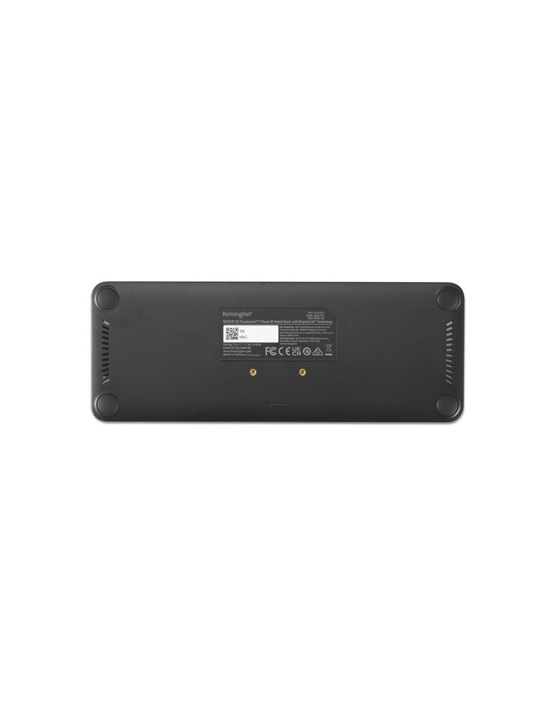 Kensington SD5920T EQ. Tecnologia di connessione: Cablato, Interfaccia host: Thunderbolt 4, Fornitura di alimentazione USB fino a: 96 W. Velocità trasferimento Ethernet LAN: 10,100,1000,2500 Mbit/s. Colore del prodotto: Nero, Tipi schede di memoria: MicroSD (TransFlash), SD, Velocità di trasferimento dati: 40 Gbit/s. Tipologia alimentazione: dC, Tensione di ingresso AC: 100 - 240 V, Corrente d'ingresso: 2.5 A. Sistema operativo Windows supportato: Windows 11, Windows 11 Enterprise, Windows 11 Enterprise x64, Windows 11 Home, Windows 11 Pro,..., Compatibilità sistema operativo Mac: Mac OS X 14.0 Sonoma, Mac OS X 15.0 Sequoia, Altri sistemi operativi supportati: ChromeOS