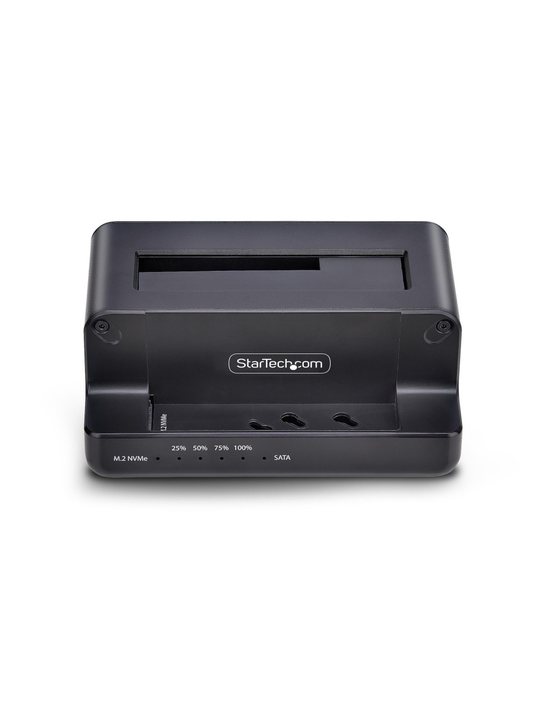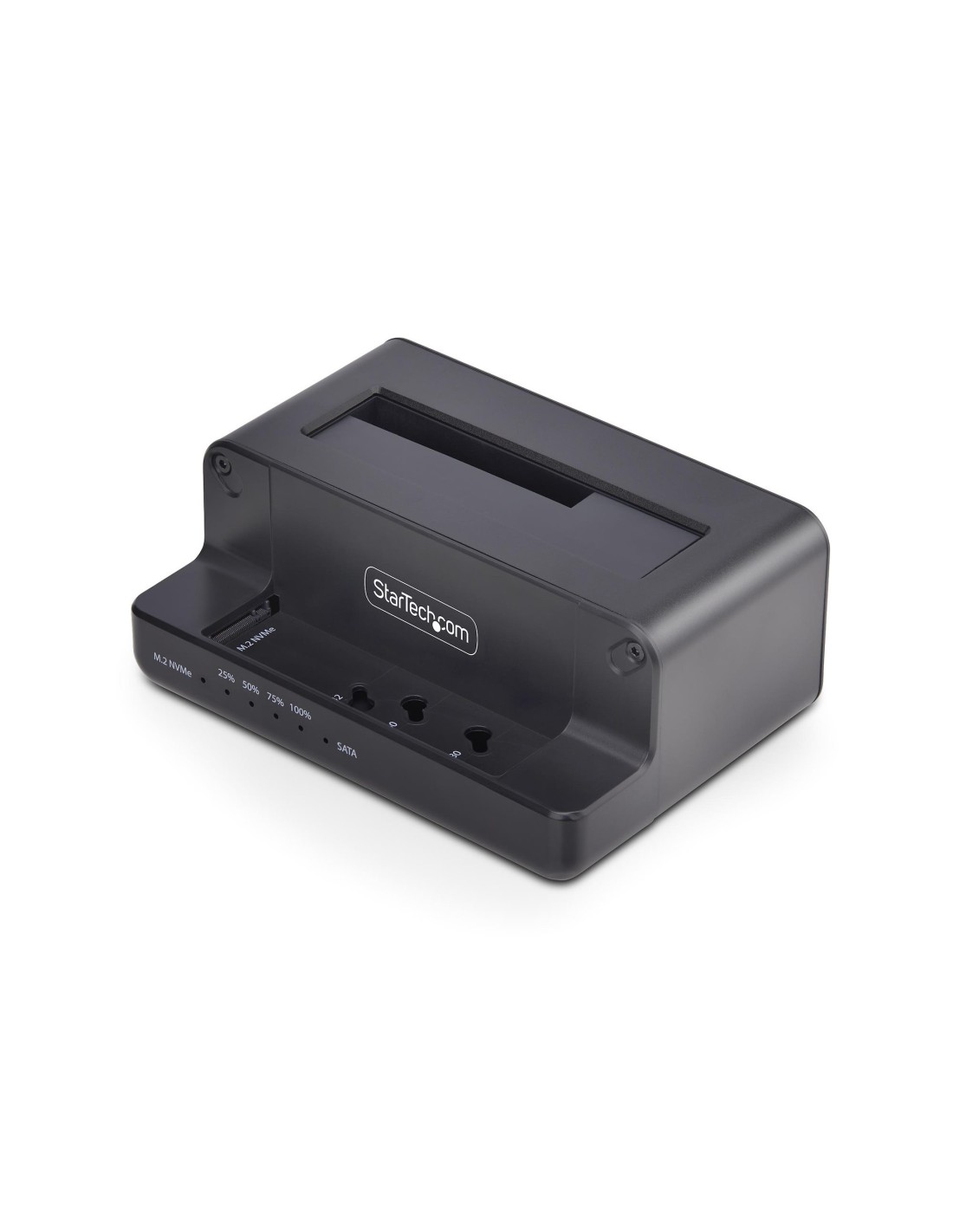 StarTech.com Duplicatore di Unità da M.2 NVMe a 2.5/3.5 SATA, Clonatore Autonomo Bidirezionale a Doppio Slot SSD da NVMe a SATA / SATA a NVMe fino a 27GBpm, TAA. Tipo di prodotto: Duplicatore HDD/SSD, numero di copie simultanee: 1 copie, Interfaccia: USB 3.2 Gen 2 (3.1 Gen 2). Dimensioni di hard disk drive supportati: 2.5,3.5", Interfacce HDD supportate: SATA, Seriale ATA II, Serial ATA III, Interfaccia Solid State Drive (SSD): M.2, PCI Express 3.0, PCI Express 3.1. Consumi: 0,1 W, Tensione di ingresso AC: 100 - 240 V, Corrente d'ingresso: 1.5 A. Dimensioni (LxPxA): 100 x 140 x 55 mm, Peso: 292 g. Larghezza imballo: 249 mm, Profondità imballo: 118 mm, Altezza imballo: 65 mm