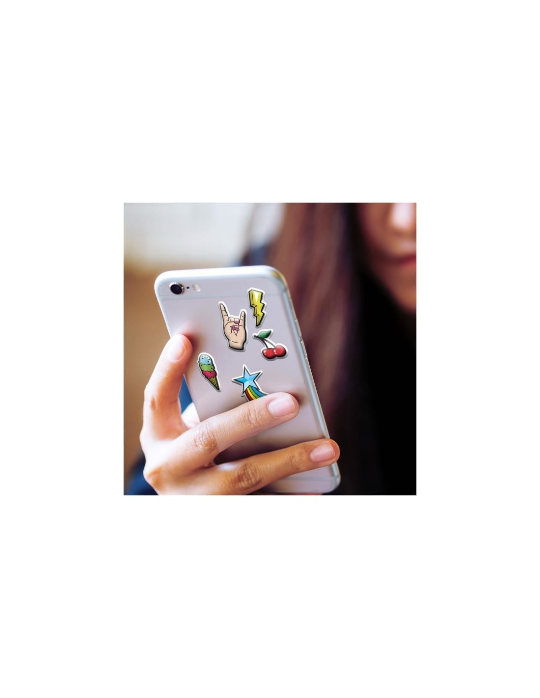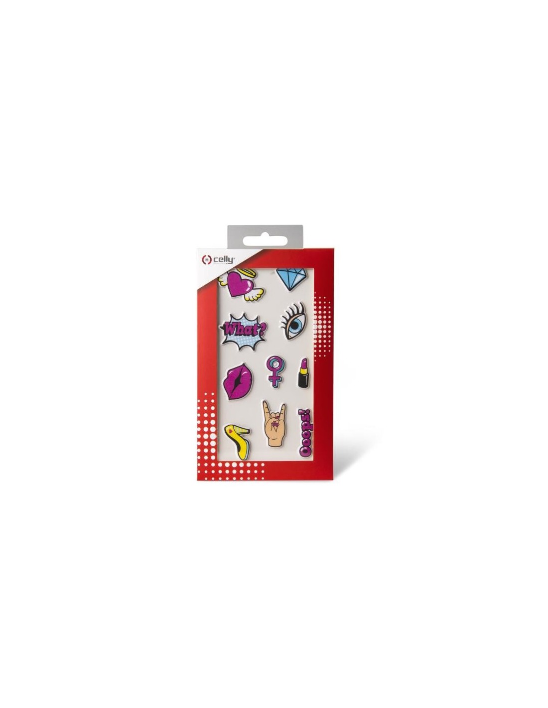 La confezione include un set di 10 stickers adesivi per smartphone.