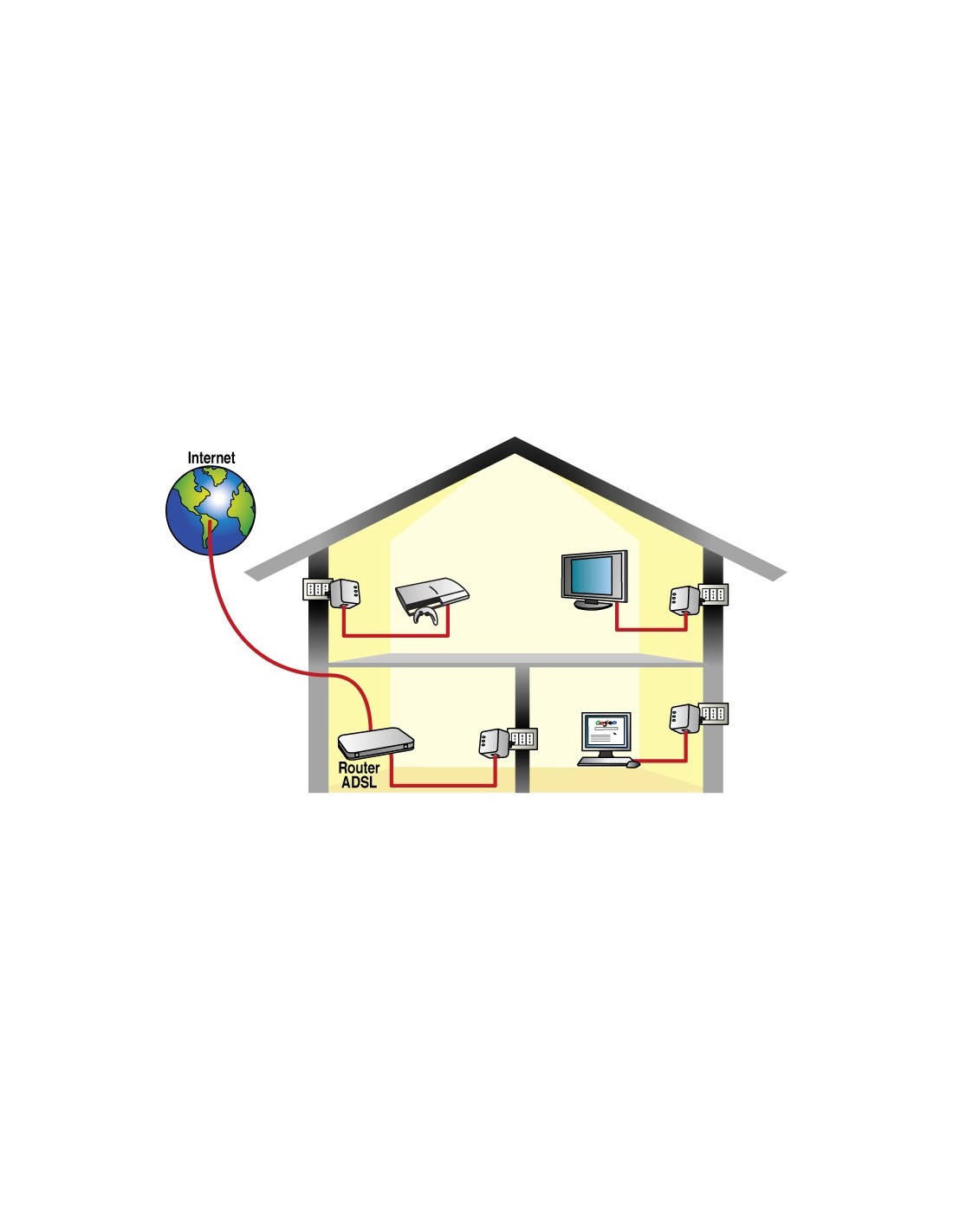 Con l'uso di adattatori PowerLine ogni presa elettrica della casa o dell'ufficio si trasforma in una presa di rete LAN. E' sufficiente posizionare un adattatore vicino al router di accesso ad Internet ed aggiungerne altri nei punti della casa dove si desidera avere la connessione Internet. Ecco fatto. Ad ogni adattatore è possibile collegare un dispositivo direttamente alla sua porta LAN, oppure uno switch di rete per collegare più dispositivi.