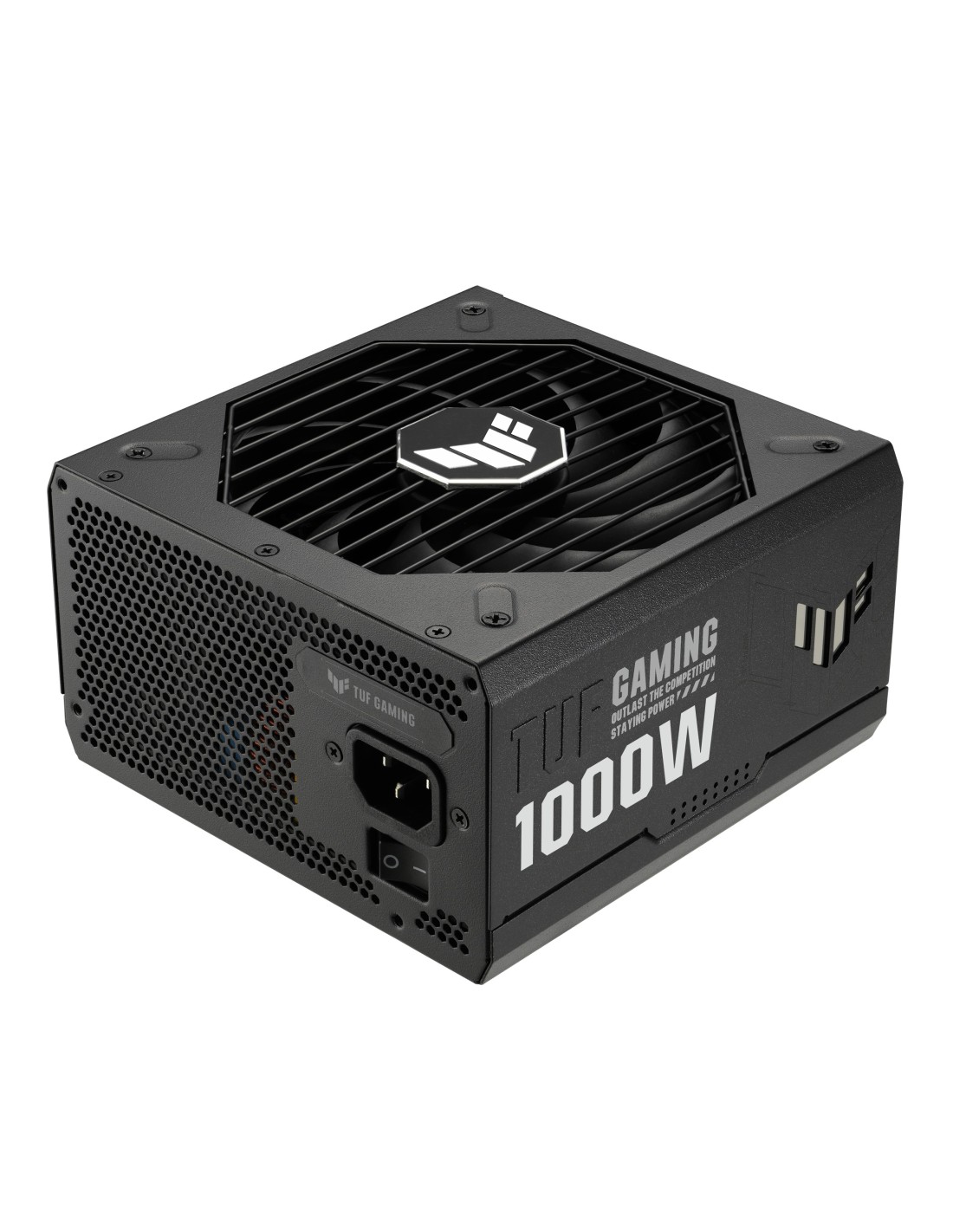 ASUS TUF Gaming 1000W Gold. Potenza totale: 1000 W, Tensione di ingresso AC: 100 - 240 V, Potenza combinata (+3.3V): 130 W. Connettore scheda madre: 20+4 pin ATX, Lunghezza del cavo di alimentazione della scheda madre: 61 cm, Lunghezza del cavo di alimentazione SATA: 120,400 mm. Utilizzo: PC, Fattore di forma dell'unità di alimentazione (PSU): ATX, Certificazione 80 PLUS: 80 PLUS Gold. Colore del prodotto: Nero, Tipo di raffreddamento: Attivo, Diametro del ventilatore: 13,5 cm. Cavi inclusi: AC, CPU, PCIe, Peripheral (Molex), SATA