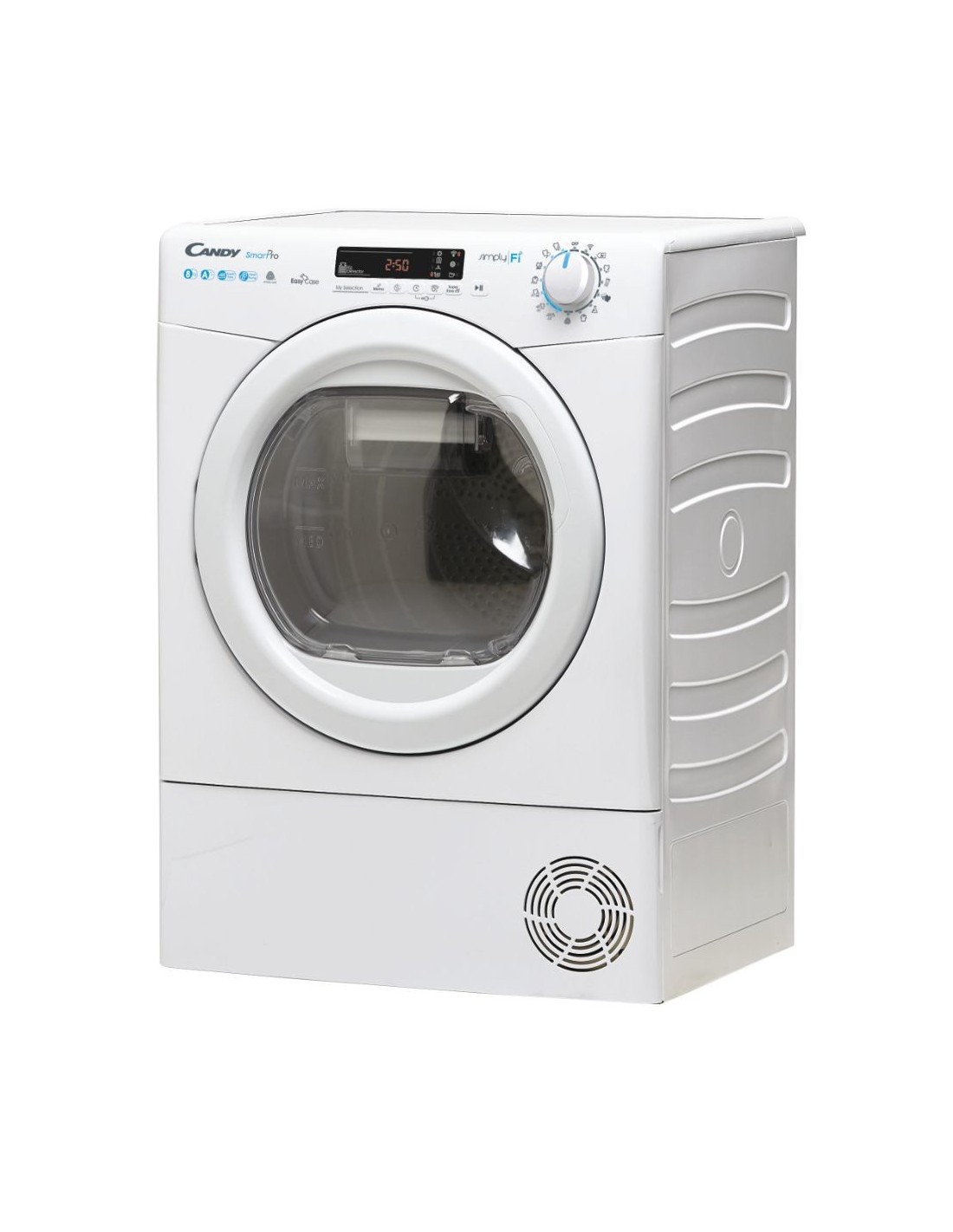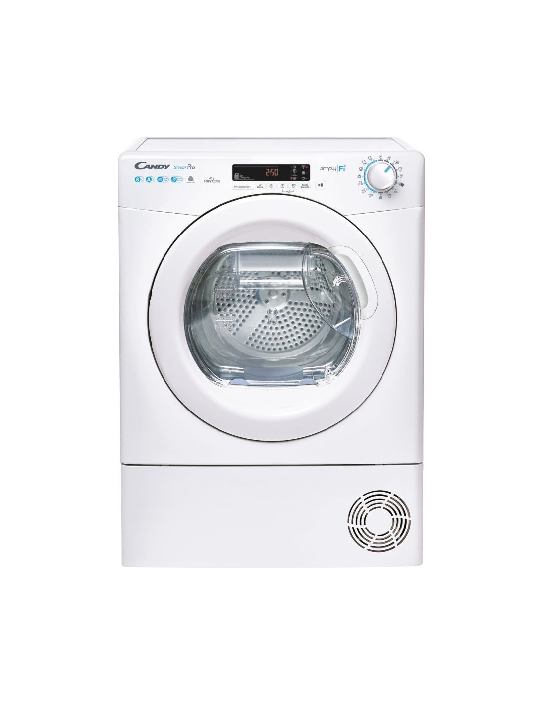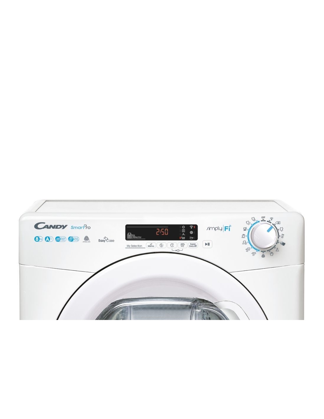 Candy Smart Pro CSO H8A2DE-S. Posizionamento dell'apparecchio: Libera installazione, Tipo di carica: Caricamento frontale, Sistema di asciugatura: Pompa di calore. Capacità cestello: 8 kg, Classe efficacia di asciugatura: B, Programmi di asciugatura: Vestiti bianchi, Dark clothes, Lana, Sport, Rapido, Risciacquo, Eco, Jeans/denim, Stoffa,.... Partenza ritardata: 24 h, Applicazioni per il controllo supportate: Candy simply-Fi. Classe efficienza energetica: A++, Consumo energetico: 1,08 kWh, Consumo energetico annuo: 236 kWh. Profondità: 600 mm, Larghezza: 600 mm, Altezza: 850 mm