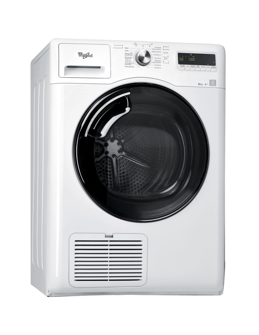 Whirlpool AZA-HP9050, Libera installazione, Caricamento frontale, Pompa di calore, Nero, Bianco, Manopola, Destra