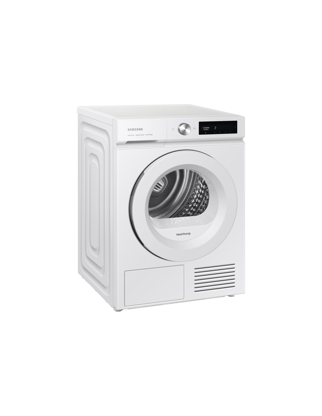 Samsung Asciugatrice AI Control Optimal dry 9Kg DV90BB5245TW. Posizionamento dell'apparecchio: Libera installazione, Tipo di carica: Caricamento frontale, Sistema di asciugatura: Pompa di calore. Capacità cestello: 9 kg, Classe efficacia di asciugatura: B, Programmi di asciugatura: Cotone, Delicati/Seta, Mix, Rapido, Sintetico, Asciugamano, Lana. Classe efficienza energetica: A+++, Consumo energetico annuo: 192 kWh, Fonte di calore: Elettrico. Profondità: 600 mm, Larghezza: 600 mm, Altezza: 850 mm. Larghezza imballo: 670 mm, Profondità imballo: 695 mm, Altezza imballo: 895 mm
