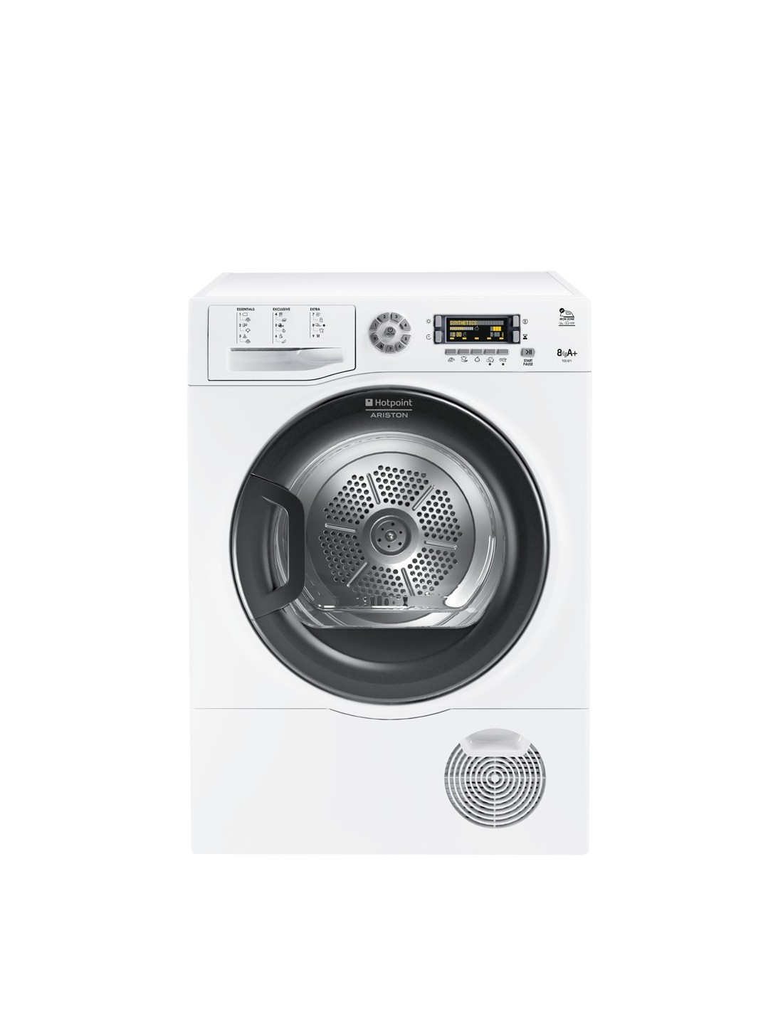 Hotpoint TCD 871 6HY1 (EU). Posizionamento dell'apparecchio: Libera installazione, Tipo di carica: Caricamento frontale, Sistema di asciugatura: Pompa di calore. Capacità cestello: 8 kg, Classe efficacia di asciugatura: B, Programmi di asciugatura: Delicati/Seta, Jeans/denim, Cotone, Sintetico. Classe efficienza energetica: A+, Consumo energetico: 2,59 kWh, Consumo energetico annuo: 305,5 kWh. Profondità: 623 mm, Larghezza: 595 mm, Altezza: 850 mm. Larghezza imballo: 640 mm, Profondità imballo: 670 mm, Altezza imballo: 890 mm
