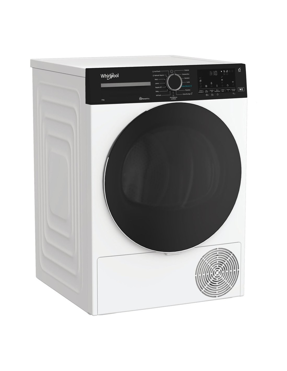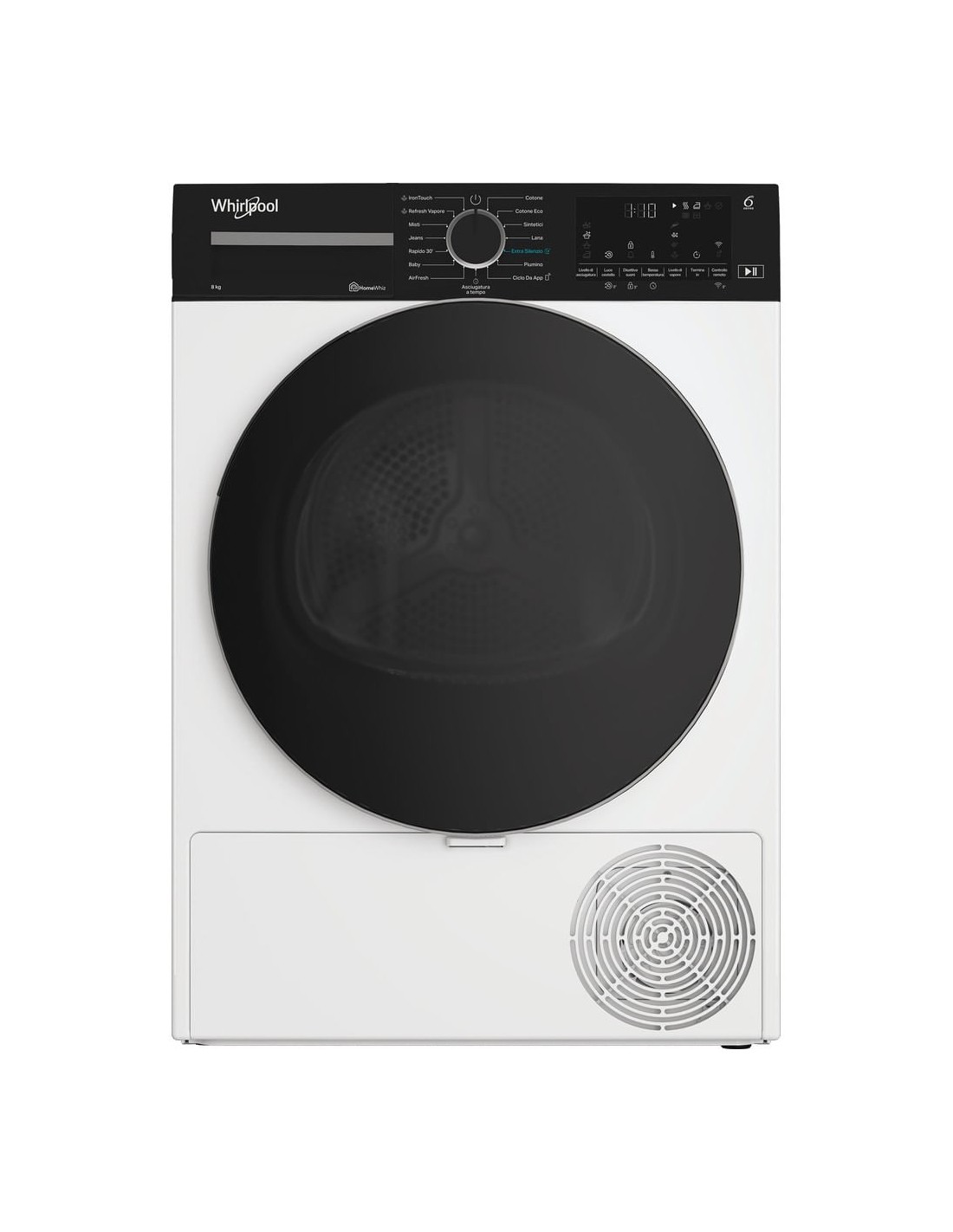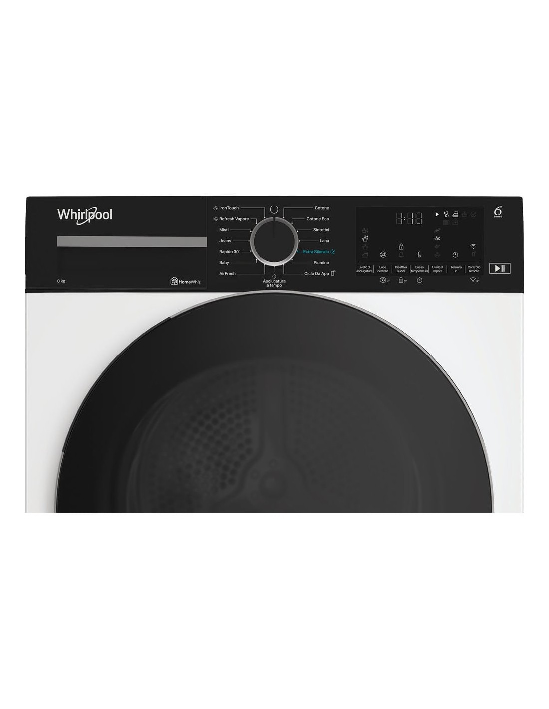 Caratteristiche di questa asciugatrice a libera installazione Whirlpool: cestello spazioso da 8,0 kg. Esclusiva tecnologia 6° SENSO che monitora costantemente il livello di umidità nel tamburo per proteggere i tuoi vestiti e garantire un'asciugatura perfetta. Funzione di connessione che consente all'elettrodomestico di ricevere informazioni riguardo il ciclo di lavaggio utilizzato e regolare le impostazioni di conseguenza per risultati perfetti. Sportello dal design elegante con schermo di sicurezza. Azione di asciugatura delicata e igienica, che riduce le pieghe e rinfresca i tuoi vestiti.
