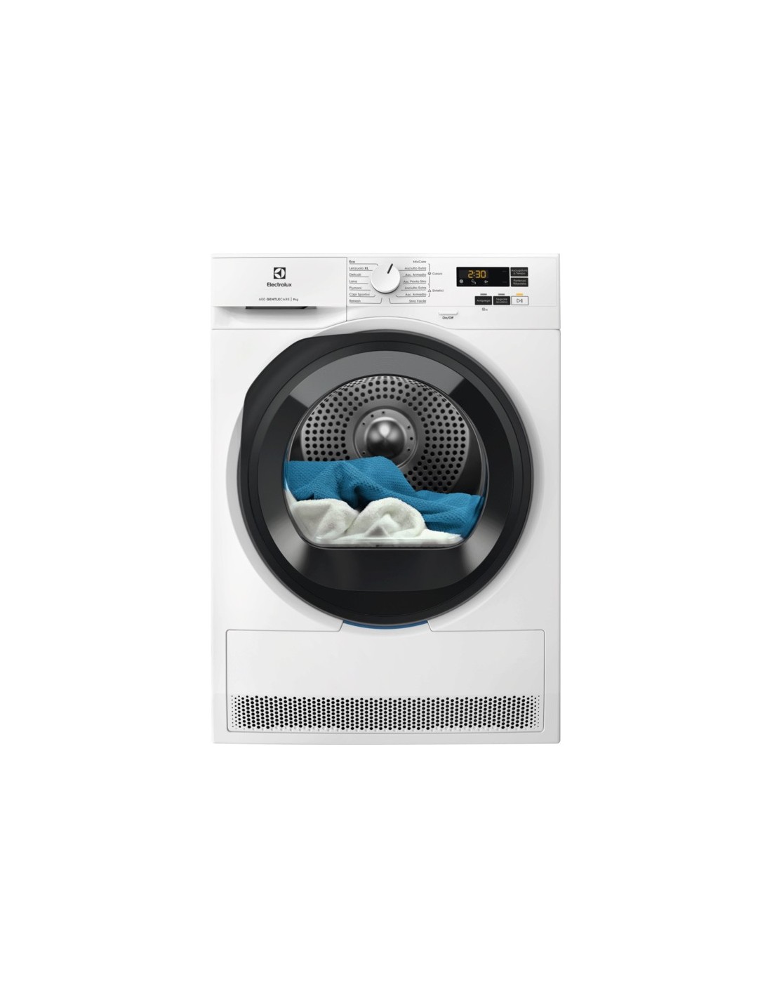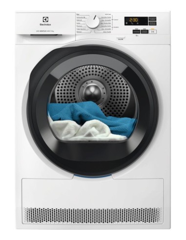 Electrolux EW6HA19G. Posizionamento dell'apparecchio: Libera installazione, Tipo di carica: Caricamento frontale, Sistema di asciugatura: Pompa di calore. Capacità cestello: 9 kg, Classe di efficienza della condensazione: B, Programmi di asciugatura: Cotone, cotone asciugatura armadio, Delicati/Seta, Piumino/piumone, Eco, Mix, Refresh, Sport,.... Classe efficienza energetica: C, Consumo energetico per 100 cicli: 103 kWh, Consumo energetico: 1,03 kWh. Profondità: 636 mm, Larghezza: 596 mm, Altezza: 850 mm. Larghezza imballo: 640 mm, Profondità imballo: 700 mm, Altezza imballo: 890 mm