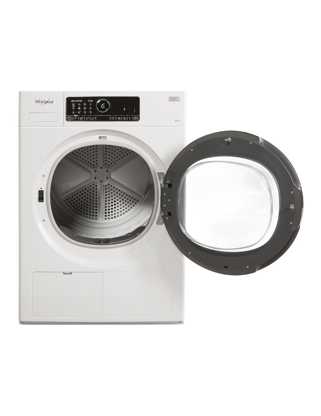 Whirlpool HSCX 90430. Posizionamento dell'apparecchio: Libera installazione, Tipo di carica: Caricamento frontale, Sistema di asciugatura: Condensa. Capacità cestello: 9 kg, Classe efficacia di asciugatura: A, Ciclo: 195 min. Partenza ritardata: 12 h. Classe efficienza energetica: A++, Consumo energetico: 2,19 kWh, Consumo energetico annuo: 259 kWh. Profondità: 659 mm, Larghezza: 596 mm, Altezza: 845 mm