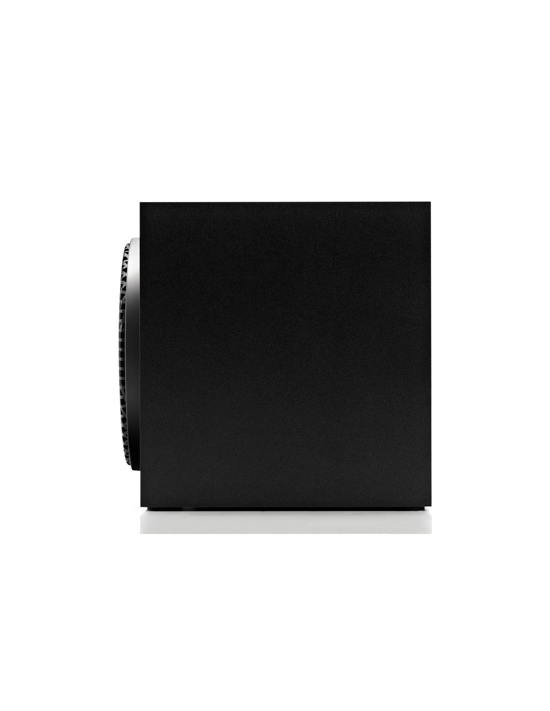 - Subwoofer in legno, con driver a cono convesso. Griglia di protezione realizzata in metallo grezzo e finitura ruvida sul subwoofer, per un look moderno ed esclusivo.