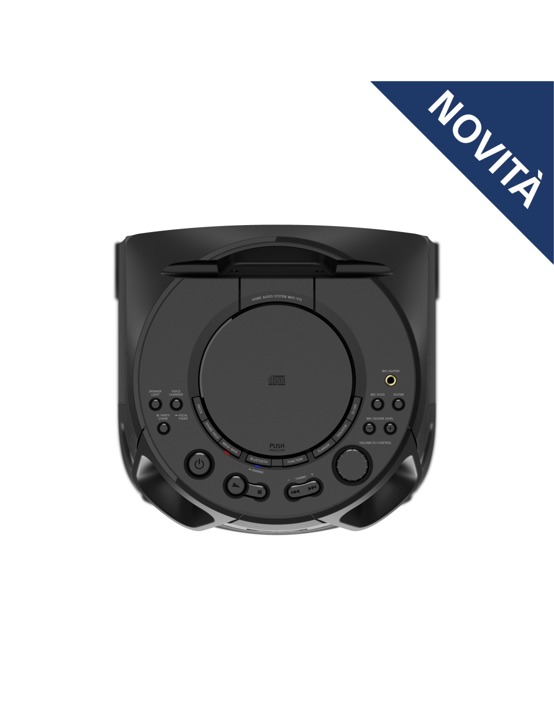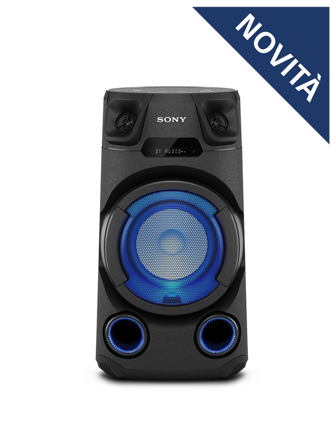Sony MHC-V13 - Altoparlante Bluetooth All in One con JET BASS BOOSTER, Effetti Luminosi, Lettore CD, USB, Nero. Formati audio supportati: AAC, MP3, WAV, WMA. Tipo di speaker: 2-vie, Diametro del tweeter: 5 cm, Diametro del woofer: 20 cm. Tipo: Sistema PA indipendente, Colore del prodotto: Nero. Controllo del volume: Pulsanti, Bande del sintonizzatore: DAB, FM, Banda FM: 87,5 - 108 MHz. Tecnologia di connessione: Con cavo e senza cavo