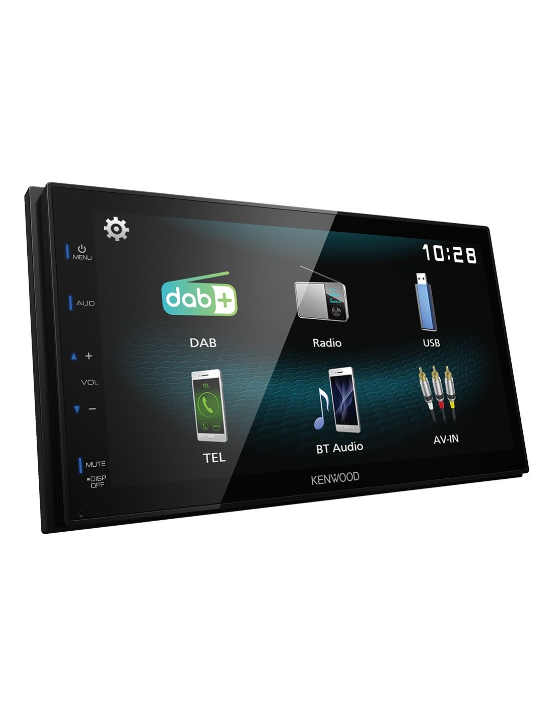 Kenwood DMX125DAB. Colore del prodotto: Nero, Grandezza DIN: 2 DIN, Potenza in uscita: 84 W. Convertitore Audio D/A: 24bit, Formati audio supportati: AAC, FLAC, MP3, WAV, WMA, Formati video supportati: H.264, MKV, MPEG1, MPEG2, MPEG4, WMV. Tipo di display: TFT, Dimensioni diagonale schermo: 17,1 cm (6.75"), Risoluzione del display: 800 x 480 Pixel. Versione Bluetooth: 2.1+EDR, Profili Bluetooth: A2DP, HFP, PBAP, Funzioni di Bluetooth: Audio in streaming, Vivavoce. Bande del sintonizzatore: AM, DAB, DAB+, FM, LW, MW, Banda FM: 87,5 - 108 MHz, Banda AM: 531 - 1611 kHz