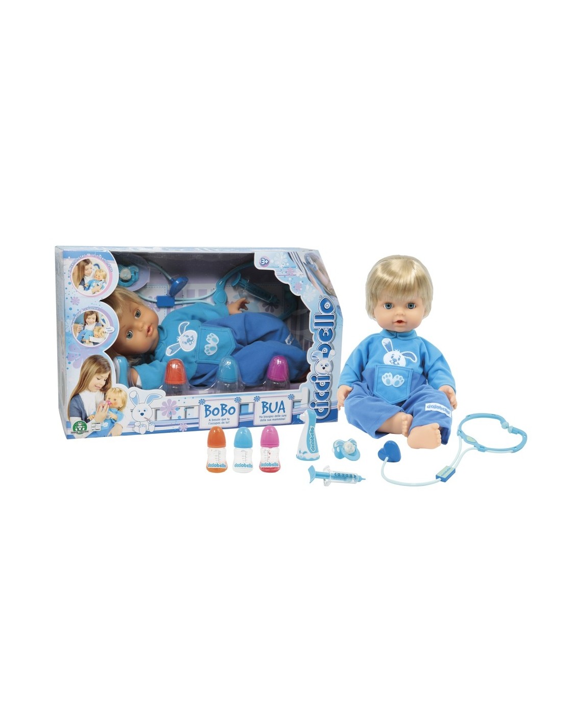 Cicciobello ha la bua ed è pronto per essere curato. La bambola, interattiva, presenta cicli di gioco sempre nuovi che sono attivabili attraverso gli accessori interattivi. Utilizza i diversi oggetti per la cura per far guarire Cicciobello: la combinazione di guarigione sarà ogni volta diversa!