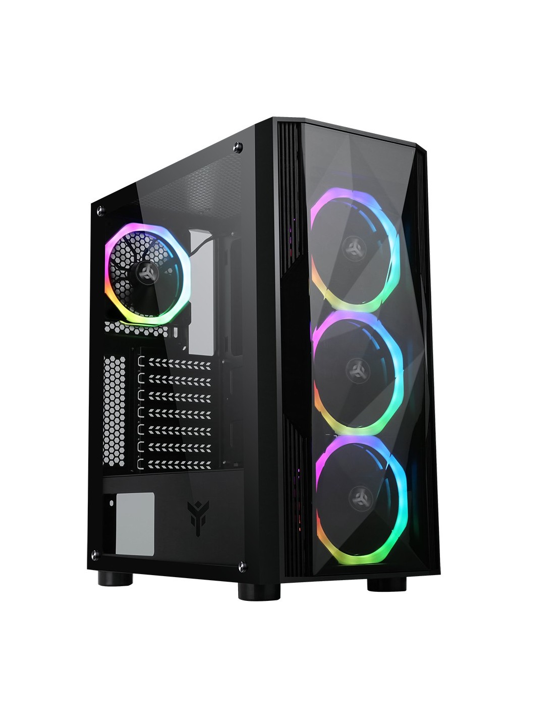 Il case SHAKE EVO è un Gaming Middle Tower con frontale trasparente in acrilico. Sul frontale troviamo bene 3 ventole da 12cm della serie ARYA2.0 con illuminazione addressable ARGB accompagnate da una terza posteriore, tutte collegate al comodo controller interno in grado di gestire fino a 6 ventole/strisce LED ARGB. Gli straordinari effetti di illuminazione possono essere gestiti tramite software della scheda madre, tasti sul controller, tasto reset del case oppure tramite il telecomando in dotazione con tecnologia a radiofrequenza (e non infrarossi) che garantisce un ottima qualità di segnale. La struttura permette di ospitare il meglio dell’hardware sul mercato, liquid cooling fino a 280mm, dissipatori alti fino a 160mm, schede video di ultima generazione e diverse ventole aggiuntive.. tutto molto pratico da installare grazie all’ottimo cable management da 21mm.