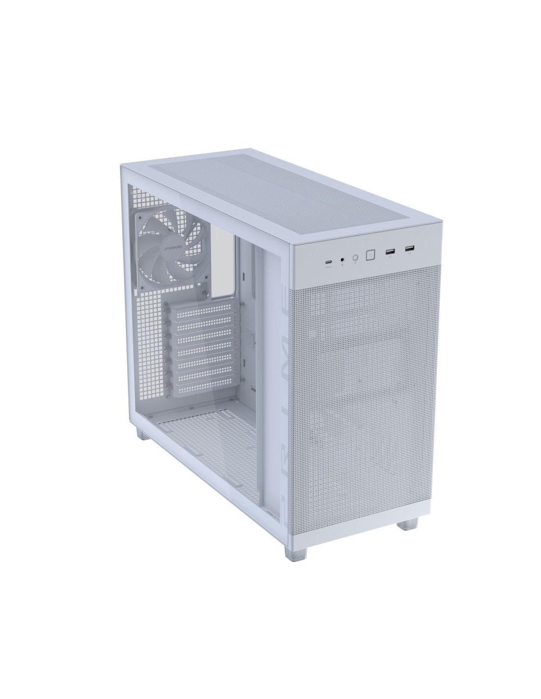 ASUS PRIME AP303 TG White. Tipo: PC, Colore del prodotto: Bianco, Fattore di forma scheda madre supportato: micro ATX, Mini-ITX, ATX. Rear fans installed: 1x 120 mm, Diametro delle ventole posteriori supportato: 120 mm, Diametri delle ventole superiori supportati: 120,140 mm. Dimensioni di hard disk drive supportati: 2.5,3.5". Larghezza: 215 mm, Profondità: 485 mm, Altezza: 425 mm. Larghezza imballo: 285 mm, Profondità imballo: 465 mm, Altezza imballo: 571 mm