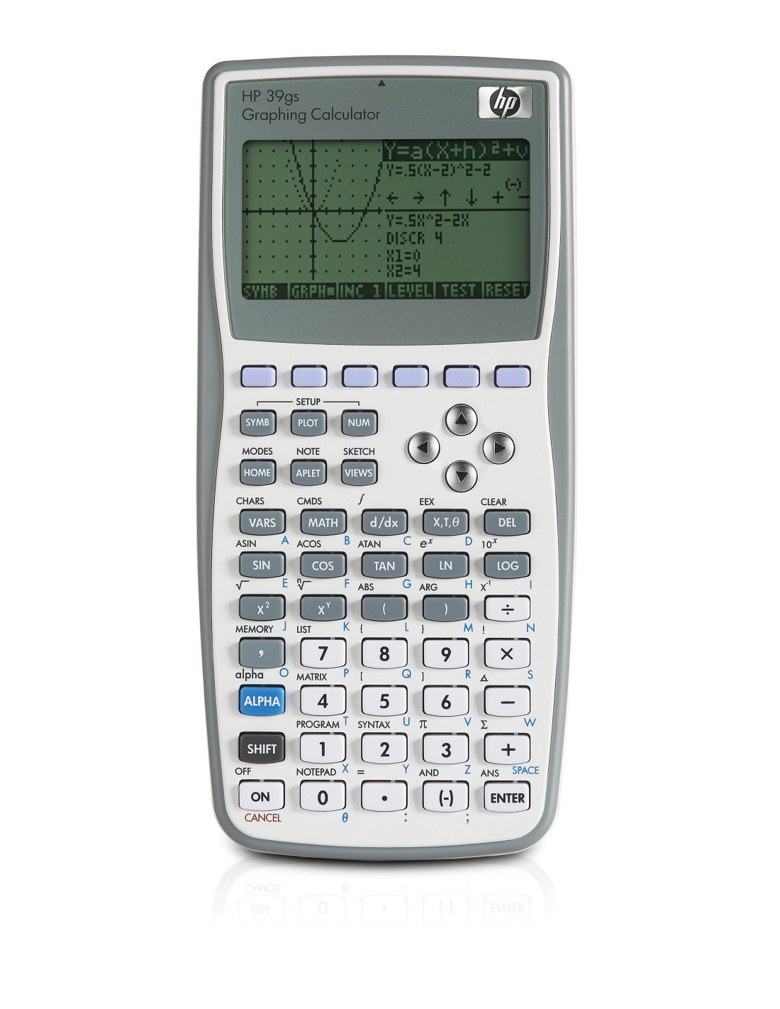 La nuova HP 39gs è lo strumento di grafica ideale per gli studenti, con schermo diviso e contrasto regolabile, visualizzazioni simboliche, numeriche e grafiche e possibilità di immissione di semplici dati algebrici. Ideale per gli studenti della scuola superiore e dell'università, consente di creare e memorizzare applet personalizzate con memoria da 256 KB, condividere facilmente i dati e collegarsi ai PC. Maggiore durata della batteria e custodia rigida scorrevole. Premiato supporto HP disponibile tutti i giorni 24 ore su 24.