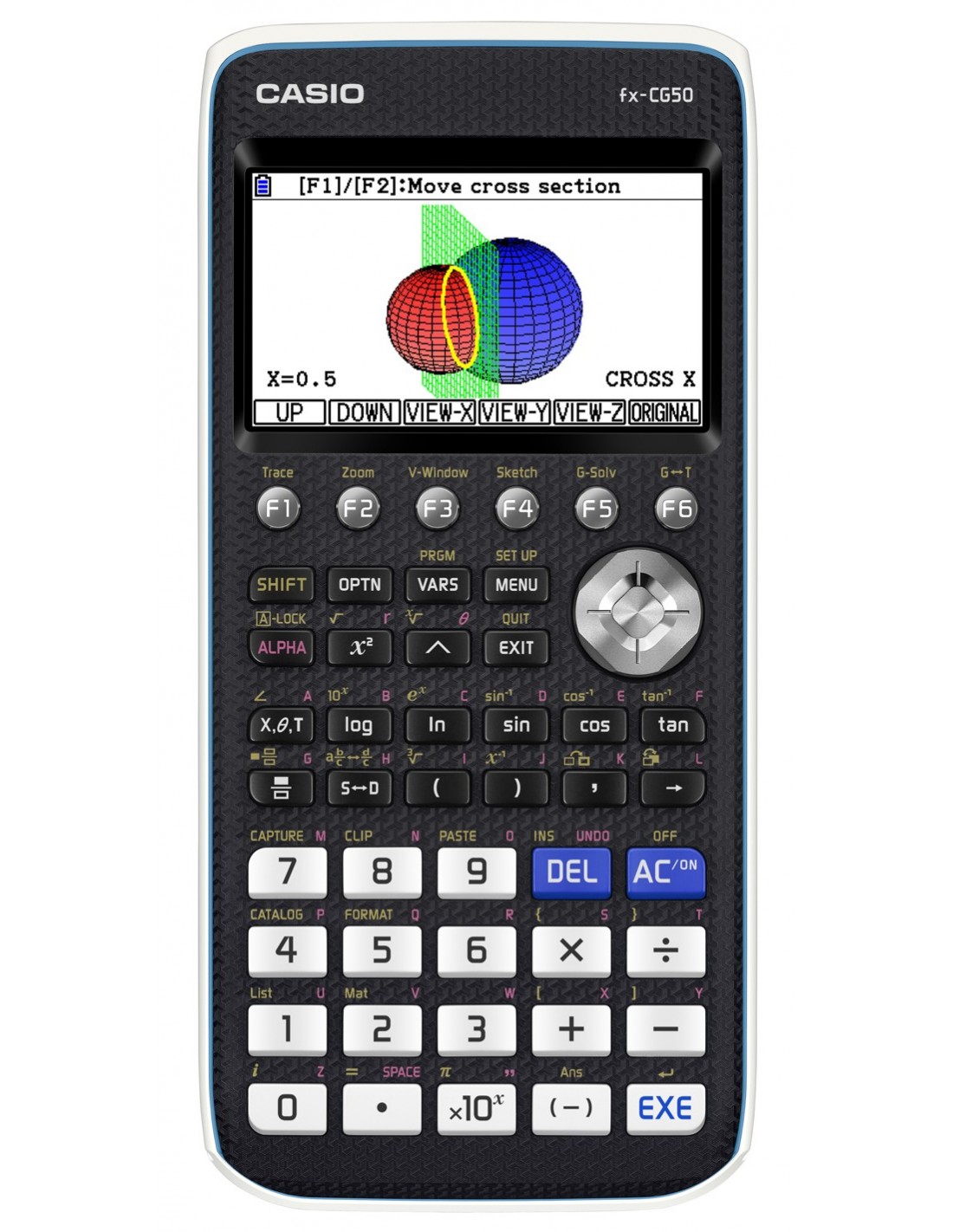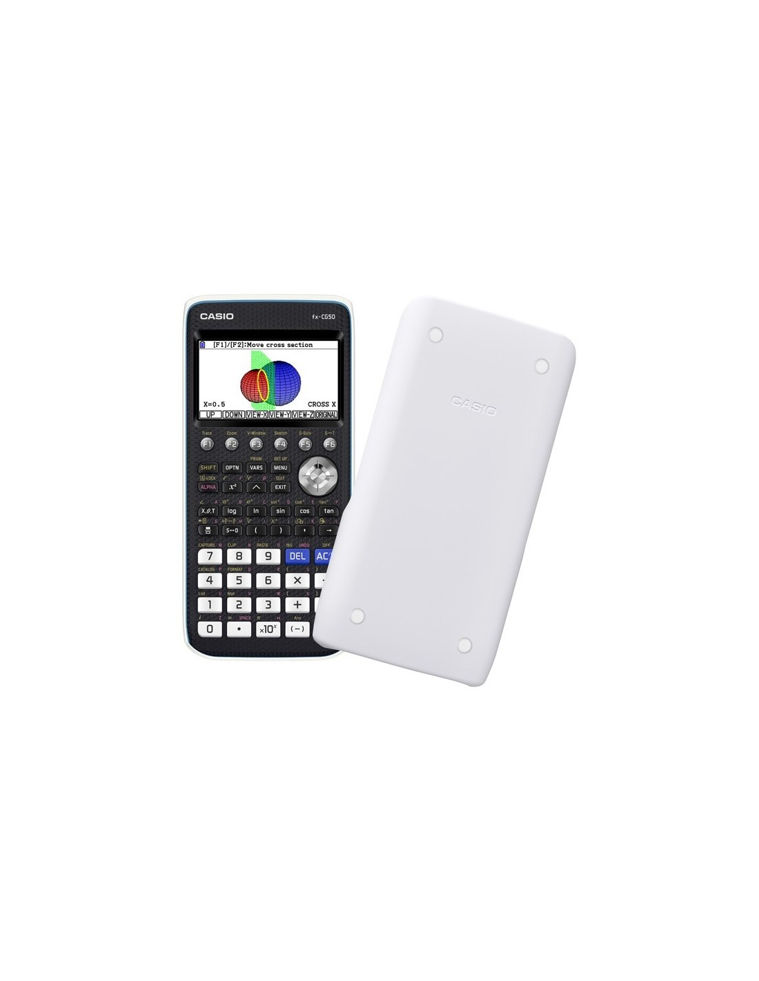 Casio FX-CG50. Fattore di forma: Tasca, Tipo: Calcolatrice grafica. Cifre: 15 cifre, Righe di testo: 8 linee, Mostra numero di caratteri: 21, Retroilluminazione display. Tipologia disco rigido: Flash. Porta USB, Quantità porte USB 2.0: 1. Alimentazione: Batteria. Colore del prodotto: Nero