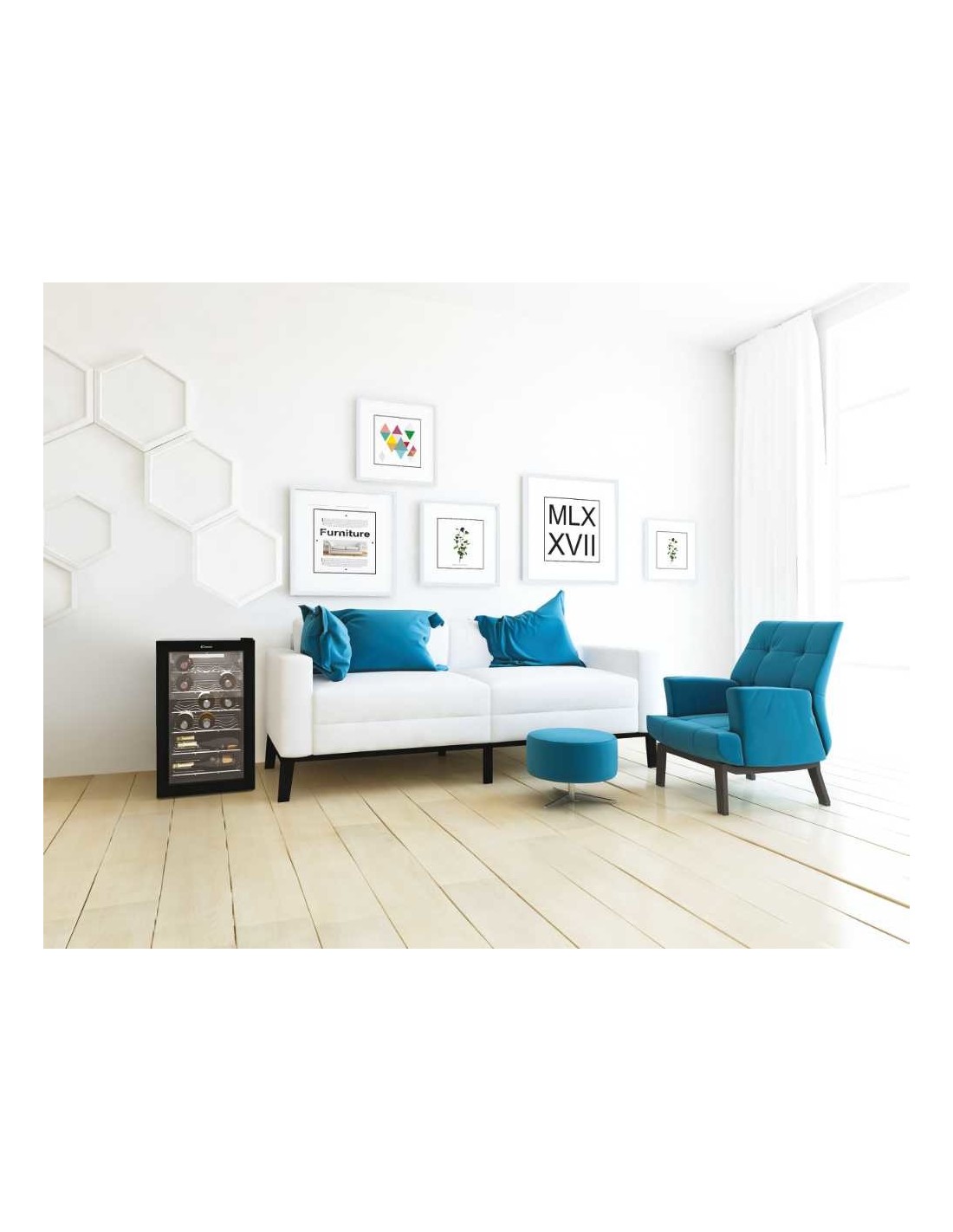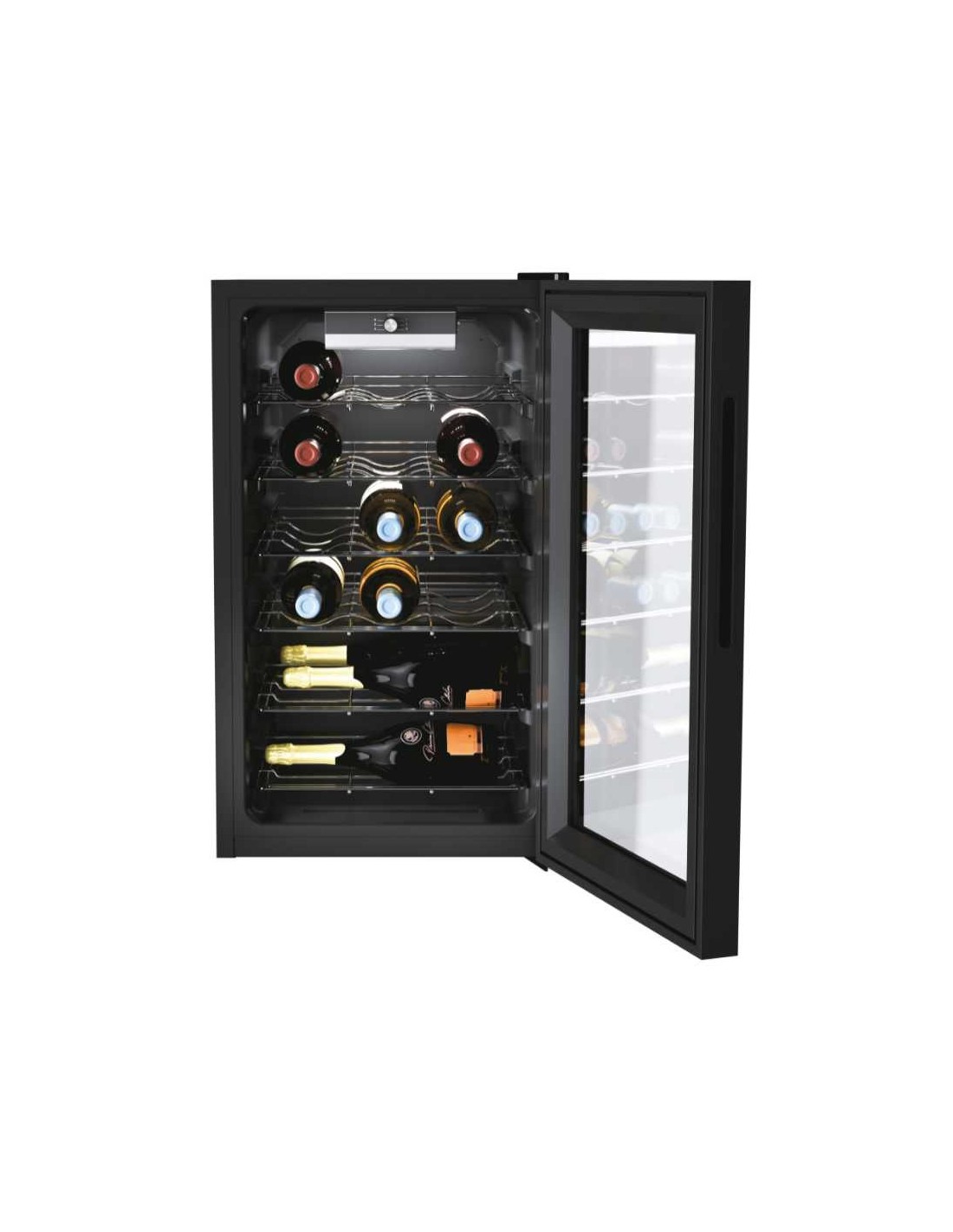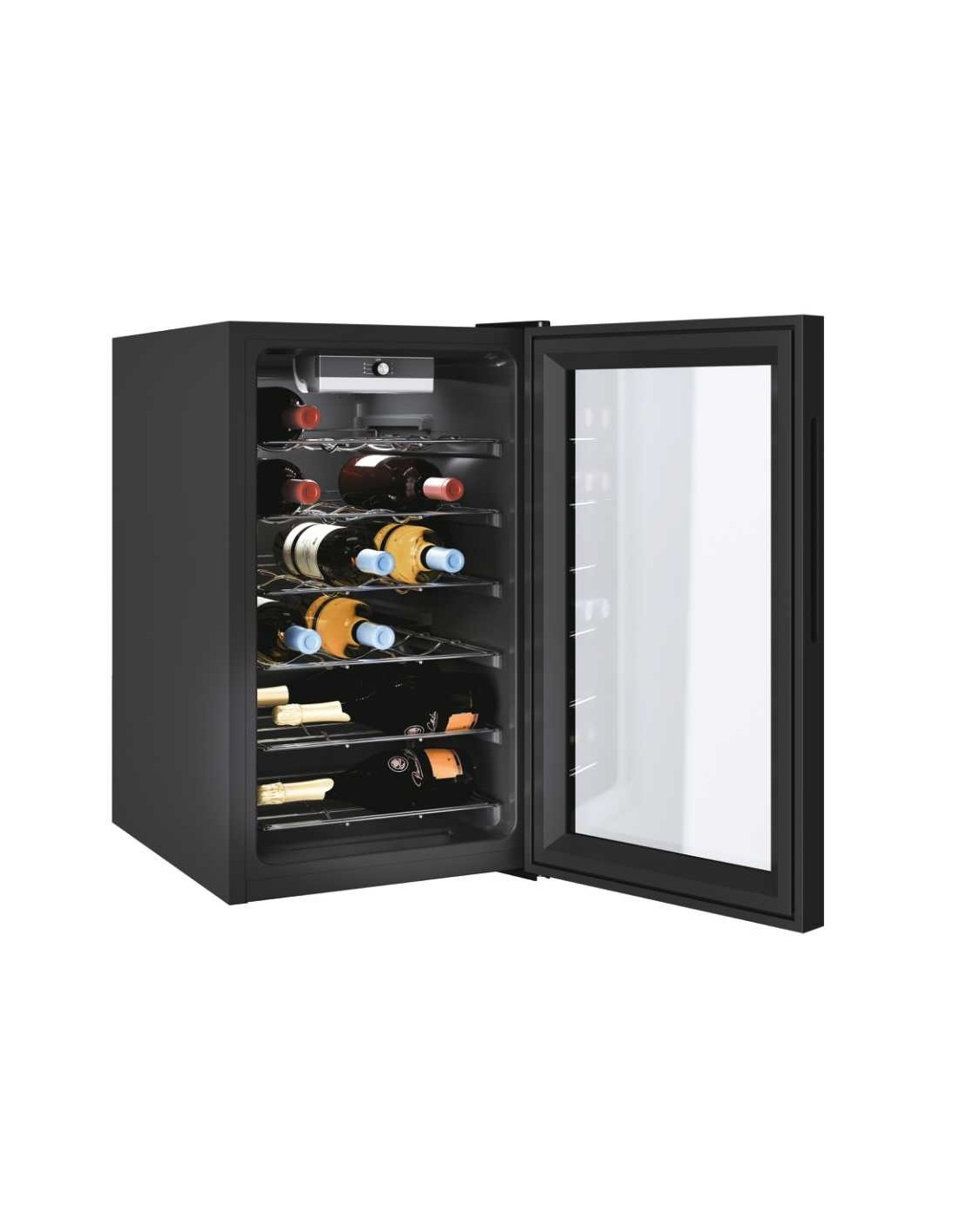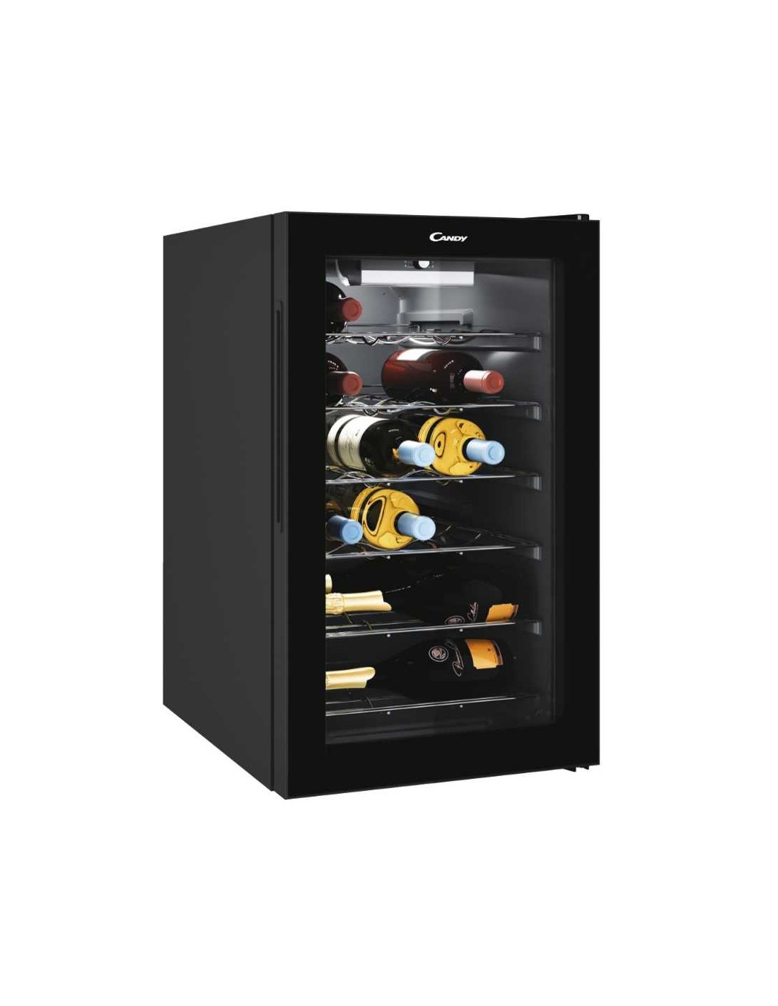 Candy DiVino CWC 021 M. Posizionamento dell'apparecchio: Libera installazione, Colore struttura: Nero, Colore interno: Grigio. Capacità bottiglie: 21 bottiglia/bottiglie, Tipo di prodotto: Cantinetta vino con compressore, Intervallo temperatura (zona 1): 7 - 18 °C. Consumo energetico annuo: 192 kWh, Scala di efficienza energetica: Da A+++ a G, Consumo d'energia: 0,527 kWh/24h. Tipo di controllo: Manopola, Tipo di lampada: LED, Applicazioni per il controllo supportate: hOn. Larghezza: 400 mm, Profondità: 550 mm, Altezza: 700 mm
