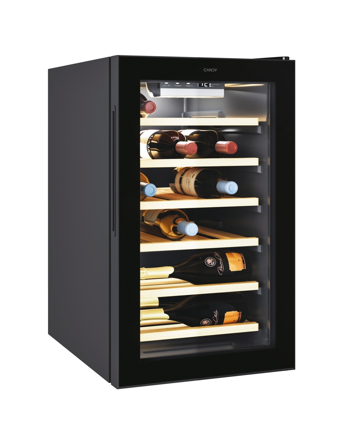 Candy DiVino CWC 021 M, Cantinetta vino con compressore, Libera installazione, 21 bottiglia/bottiglie, Luce interna, Nero, Nero