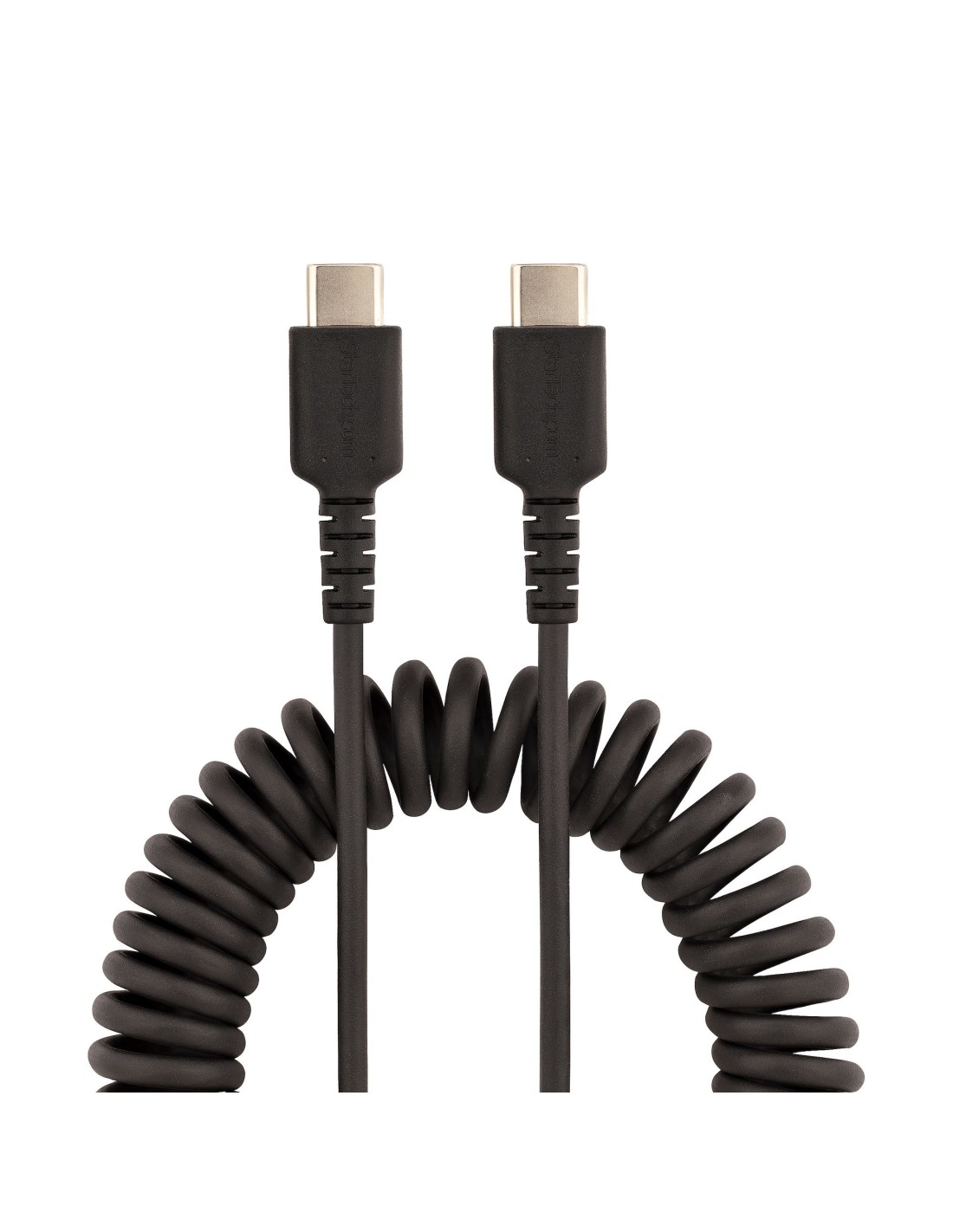 StarTech.com Cavo USB C Ricarica Veloce da 1m; Cavetto USB tipo C 2.0 Spiralato di Alimentazione e Sincronizzazione; Resistente Cavo USB C/USB C in Fibra Aramidica, Maschio-Maschio, TPE - Nero. Lunghezza cavo: 1 m. Connettore 1: USB B, Connettore 2: USB C, Versione USB: USB 2.0, Massima velocità di trasferimento: 0,48 Gbit/s, Placcatura contatti: Nichel, Colore del prodotto: Nero