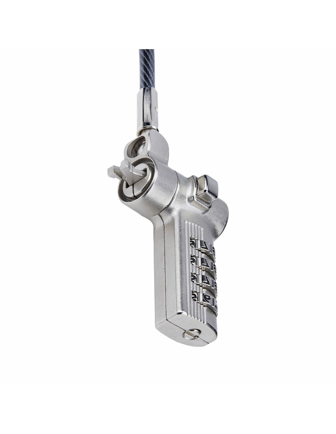 StarTech.com Confezione da 25 cavi di sicurezza universali per notebook da 2m, compatibili con Noble Wedge®/Nano/K-Slot, cavo a combinazione senza chiave. Colore del prodotto: Nero, Argento, Utilizzo: Computer portatile, Tipo di serratura: Blocco di combinazione. Lunghezza cavo: 2 m, Diametro del cavo: 4,4 mm, Peso: 146 g. Quantità per pacco: 25 pz, Larghezza imballo: 174 mm, Profondità imballo: 273 mm. Larghezza scatola principale: 348 mm, Lunghezza del cartone principale: 273 mm, Altezza scatola principale: 236 mm