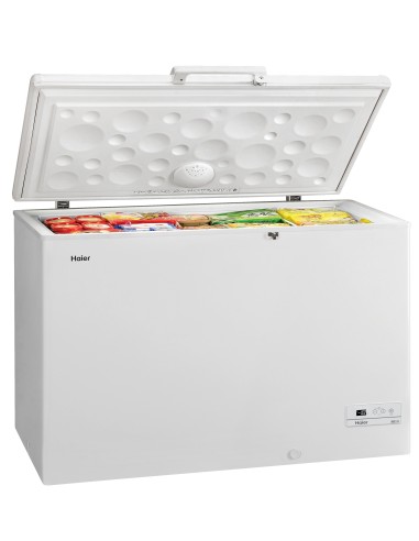 Haier HCE379R. Posizionamento dell'apparecchio: Libera installazione, Colore del prodotto: Bianco, Cerniera porta: In alto. Capacità netta totale: 366 L, Classe emissione rumore: C, Emissione acustica: 44 dB. Capacità netta congelatore: 366 L, Capacità di congelamento: 22 kg/24h, Autonomia senza energia elettrica: 30 h. Classe efficienza energetica: F, Consumo energetico annuo: 312 kWh, Scala di efficienza energetica: Da A a G. Larghezza: 1240 mm, Profondità: 745 mm, Altezza: 845 mm