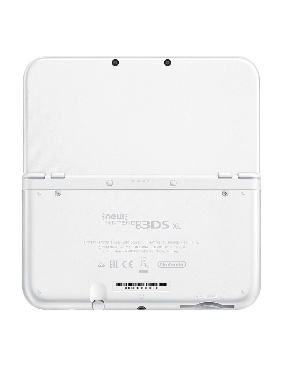 Nintendo New 3DS XL. Piattaforma: New Nintendo 3DS XL, Modello del processore: ARM11, Frequenza del processore: 804 MHz. Colore del prodotto: Bianco, Tecnologia di controllo del gioco: Analogico/Digitale, Tasti funzione per il controllo del gioco: D-pad. Tipologia display: LCD, Dimensioni schermo: 12,4 cm (4.88"), Risoluzione del display: 800 x 240 Pixel. Capacità memoria integrata: 1 GB, Tipi schede di memoria: MicroSD (TransFlash), Scheda di memoria inclusa: 4 GB. Banda di frequenza: 2.4 GHz, Standard Wi-Fi: 802.11b, 802.11g