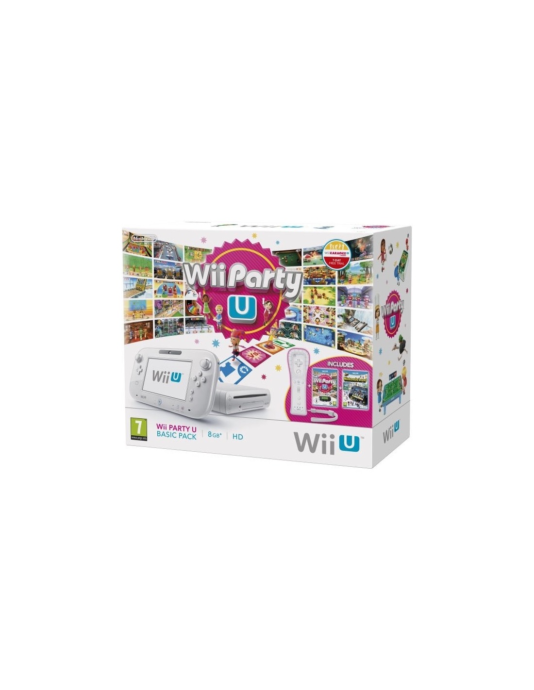 Nintendo Wii Party U: Basic Pack. Piattaforma: Wii U, Colore del prodotto: Bianco, Modello del processore: IBM PowerPC. Supporto di memoria: Flash, Capacità memoria interna: 8 GB, Tipi schede di memoria: SD, SDHC. Standard Wi-Fi: 802.11b, 802.11g, Wi-Fi 4 (802.11n). Modalità video supportate: 1080i, 1080p, 480i, 480p, 720p. Larghezza: 171,4 mm, Profondità: 269,2 mm, Altezza: 45,7 mm