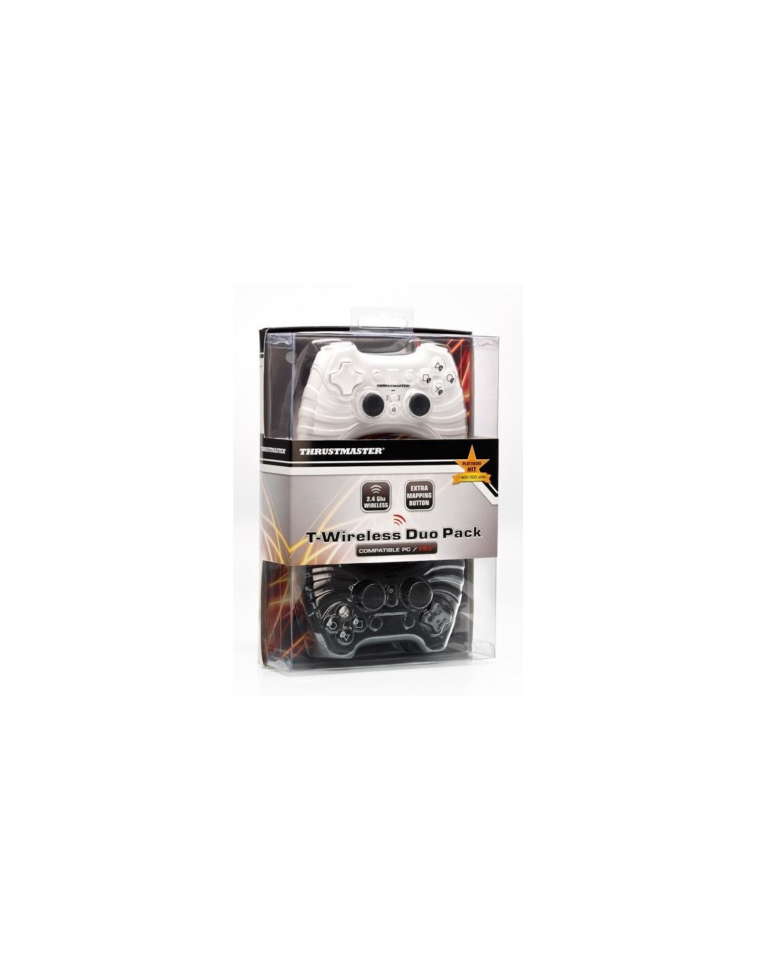 Thrustmaster T-Wireless Duo Pack. Tipo di dispositivo: Gamepad, Piattaforme di gioco supportate: PC, Playstation 3, Tecnologia di controllo del gioco: Digitale. Tecnologia di connessione: Cablato, Interfaccia dispositivo: RF, Range di frequenza: 2,4 GHz. Materiale della scocca: Plastica, Indicatori LED: Potenza. Tipo batteria: Mini Stilo AAA, Durata batteria: 50 h. Tipo di imballo: Blister