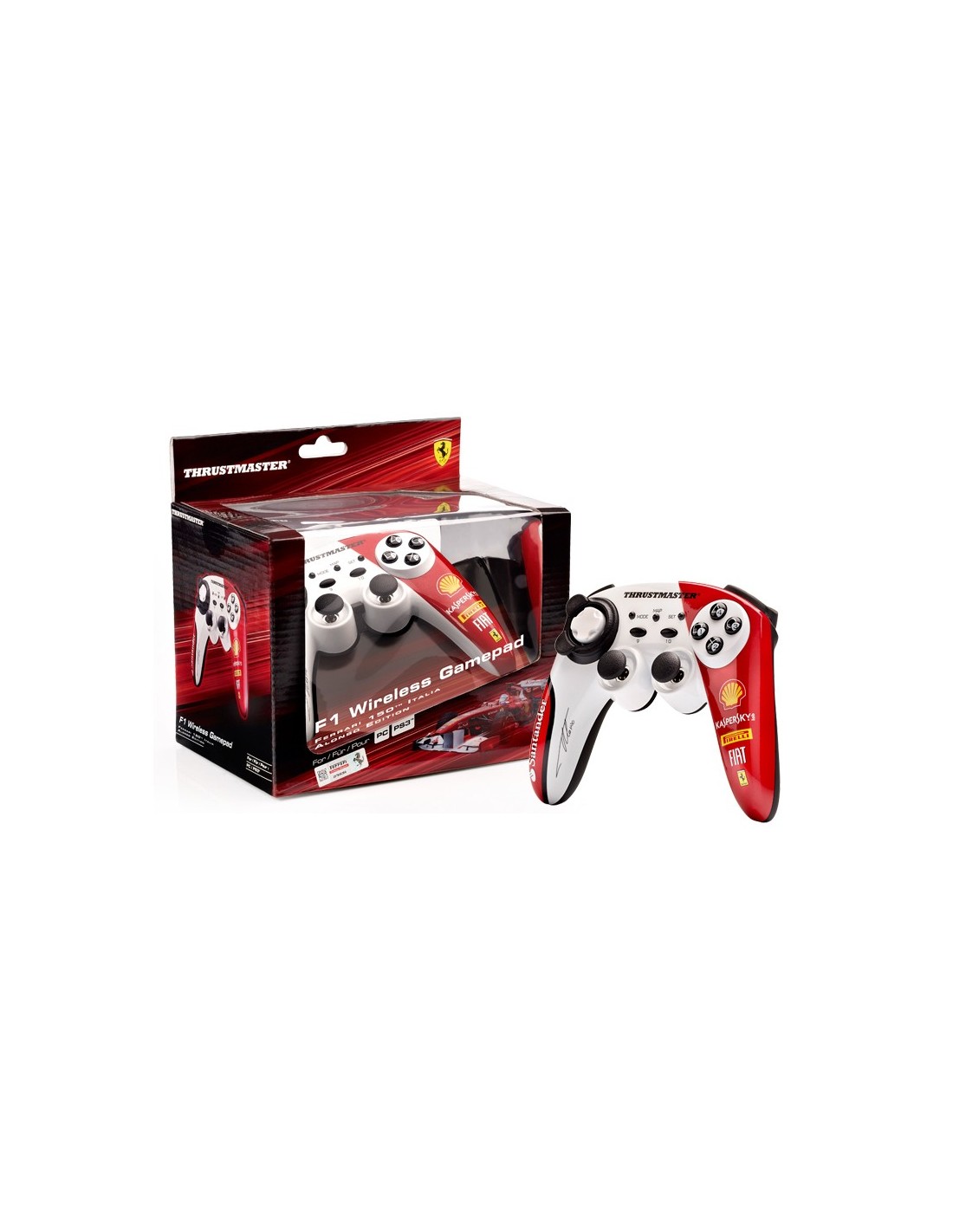 Thrustmaster F1 Wireless Gamepad Ferrari 150th Italia Alonso Edition. Tipo di dispositivo: Gamepad, Piattaforme di gioco supportate: PC, Playstation 3, Tasti funzione per il controllo del gioco: Tasto Home. Tecnologia di connessione: Wireless, Range di frequenza: 2,4 GHz