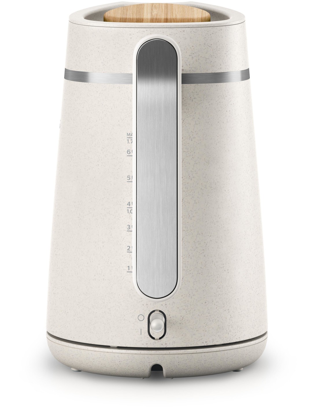Philips Eco Conscious Edition, Bollitore in plastica a base biologica, capacità 1,7L, 2200W, HD9365/10. Capacità tanica acqua: 1,7 L. Potenza: 2200 W. Colore del prodotto: Bianco, Indicatore del livello dell'acqua. Senza filo. Filtro