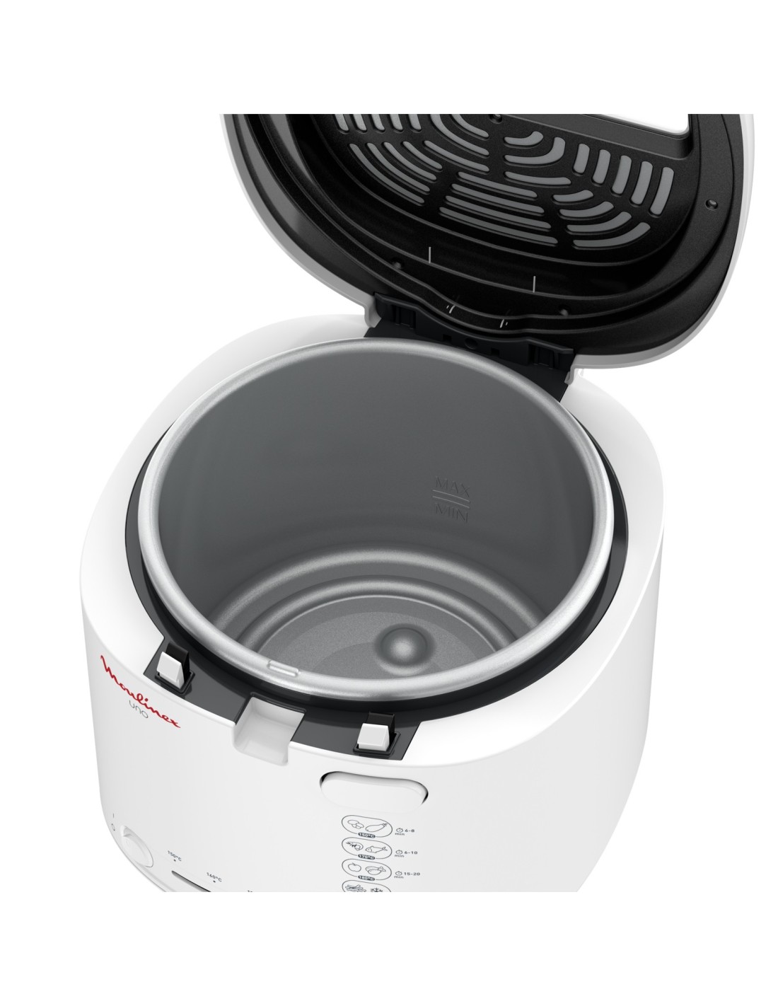 Moulinex AF2031 Friggitrice, Uno, Capacità di 1 Kg per 4 persone, Capacità olio 1,8 L, Bianco. Tipo di prodotto: Friggitrice, Capacità friggitrice: 0,8 kg, Capacità olio: 1,8 L. Tipo di costruzione: Singolo, Colore del prodotto: Bianco, Tipo di controllo: Pulsanti, Leva. Potenza: 1600 W, Massima potenza in entrata: 1600 W. Larghezza: 300 mm, Profondità: 300 mm, Altezza: 250 mm. Consumi: 1600 W