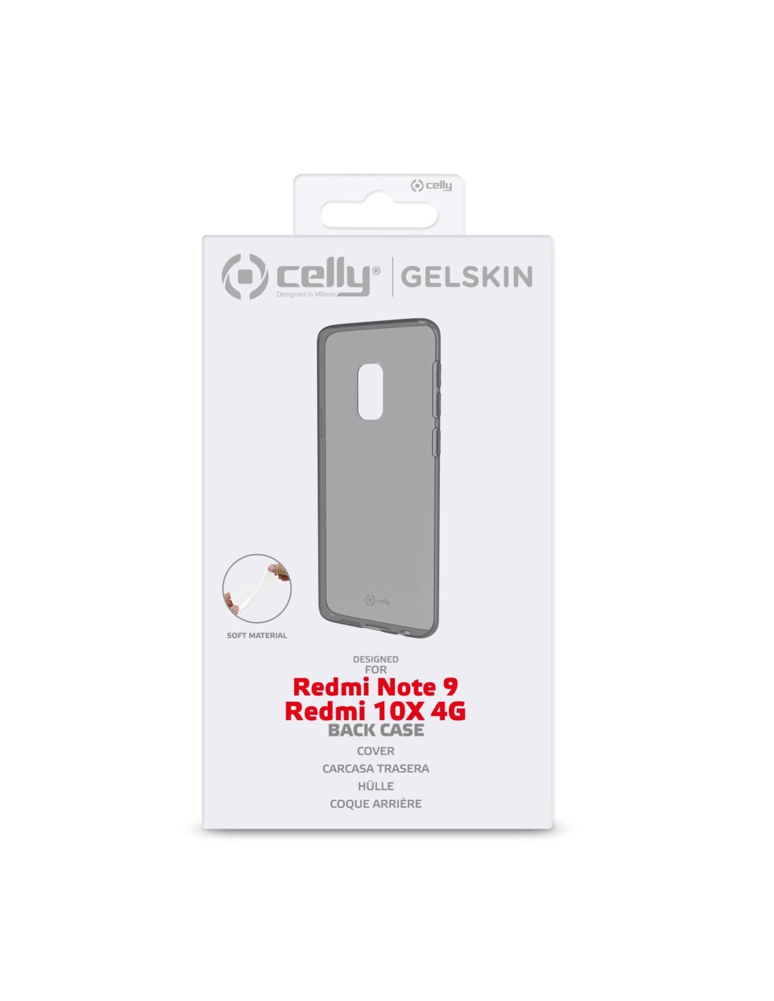 Celly GELSKIN902BK. Tipologia custodia: Cover, Compatibilità marca: Xiaomi, Compatibilità: Redmi Note 9, Redmi 10X 4G, Capienza massima dimensioni dello schermo: 16,6 cm (6.53"), Colorazione superficie: Monocromatico, Colore del prodotto: Trasparente