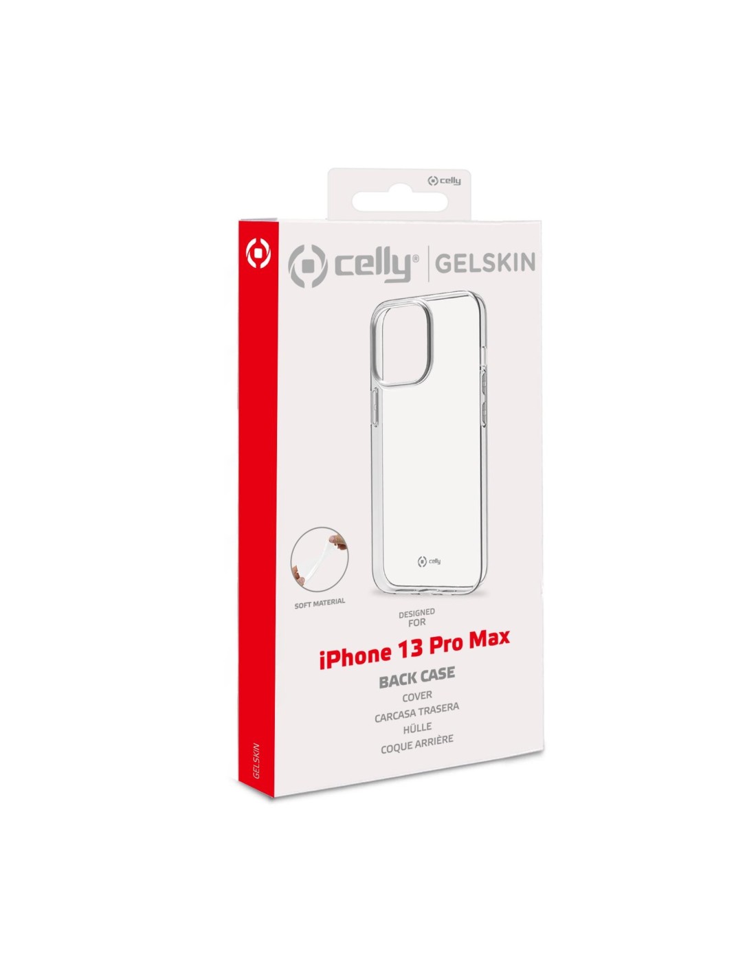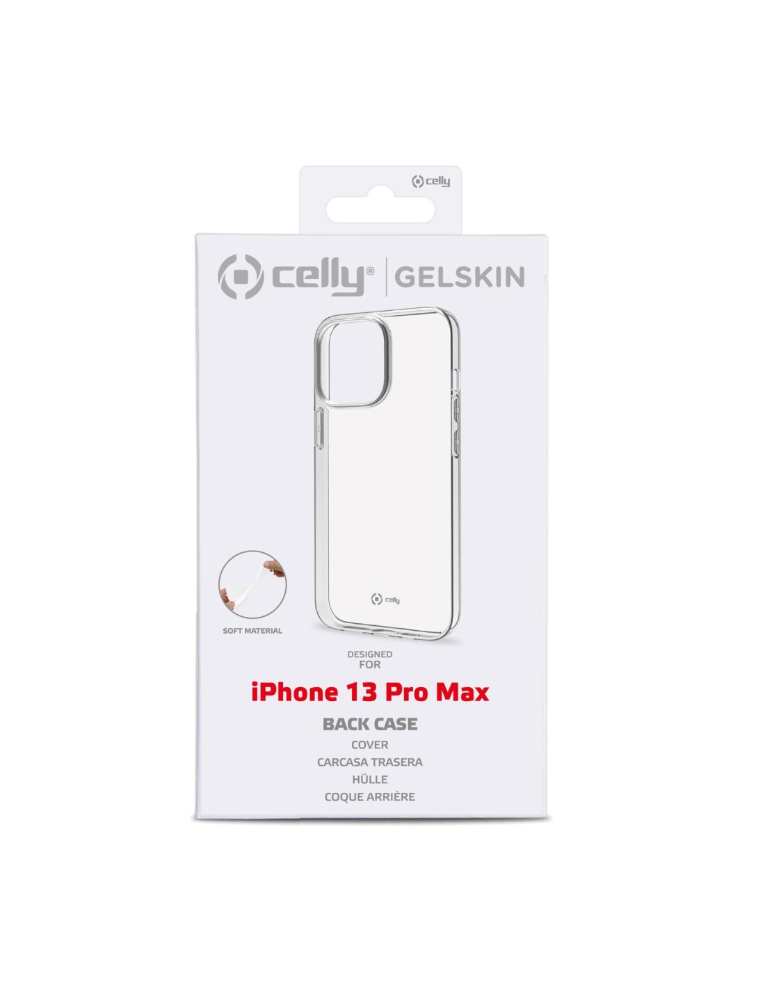 Celly GELSKIN Apple iPhone 13 Pro Max. Tipologia custodia: Cover, Compatibilità marca: Apple, Compatibilità: iPhone 13 Pro Max, Capienza massima dimensioni dello schermo: 17 cm (6.7"), Colorazione superficie: Monocromatico, Colore del prodotto: Trasparente