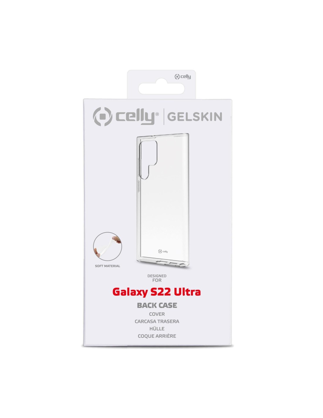 Celly GELSKI1012. Tipologia custodia: Cover, Compatibilità marca: Celly, Compatibilità: Samsung Galaxy S22 Ultra, Capienza massima dimensioni dello schermo: 15,5 cm (6.1"), Colorazione superficie: Monocromatico, Colore del prodotto: Trasparente