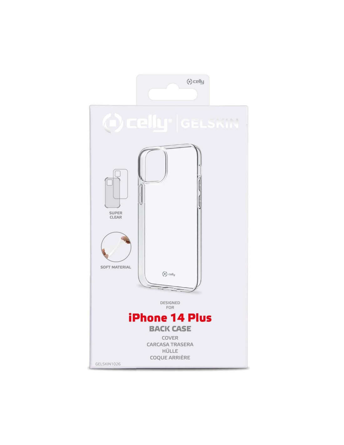 Celly Gelskin. Tipologia custodia: Cover, Compatibilità marca: Apple, Compatibilità: iPhone 14 Plus, Capienza massima dimensioni dello schermo: 17 cm (6.7"), Colorazione superficie: Monocromatico, Colore del prodotto: Trasparente
