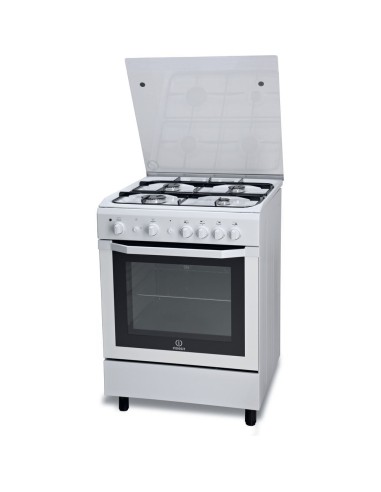 Caratteristiche di questa cucina a libera installazione Indesit: 4 fuochi. Colore bianco. Alimentazione a gas. 60 cm di larghezza.