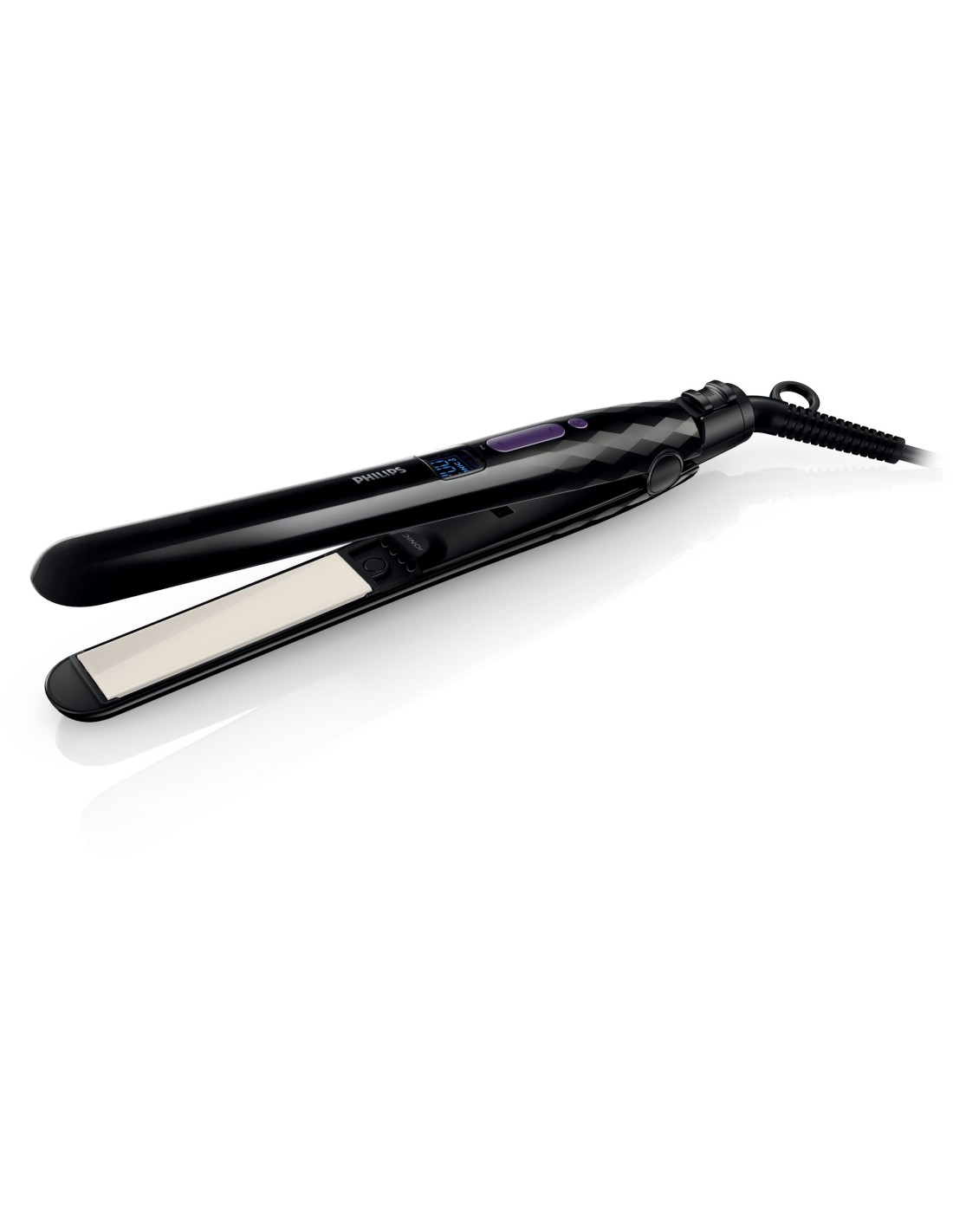 Philips Care & control Piastra per capelli HP8344/00. Tipo: Piastra per capelli, Tecnologia: Caldo, Temperatura (min): 130 °C. Colore del prodotto: Nero. Lunghezza cavo: 1,8 m