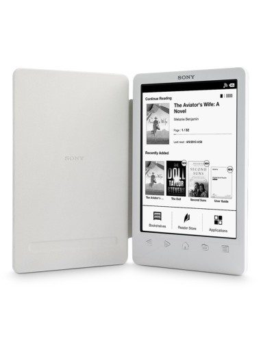 Sony PRS-T3. Dimensioni schermo: 15,2 cm (6"), Tecnologia: E Ink Pearl, Risoluzione del display: 758 x 1024 Pixel. Formati testo supportati: ePub,FB2,PDF,TXT, Formati immagini supportati: BMP, GIF, JPG, PNG. Capacità memoria interna: 2 GB, Tipi schede di memoria: MicroSD (TransFlash), Memoria espandibile fino a: 32 GB. Connettore USB: Micro-USB A, Standard Wi-Fi: 802.11b,802.11g,Wi-Fi 4 (802.11n). Colore del prodotto: Bianco
