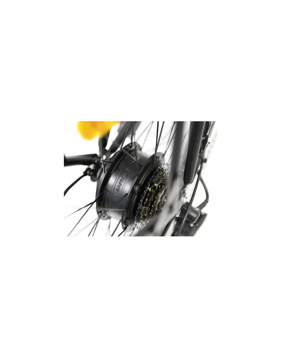 Motore BAFANG a 3 velocità da 250 W, attivabile dal comando sul manubrio, in grado di farti raggiungere una velocità massima di 25 km/h.