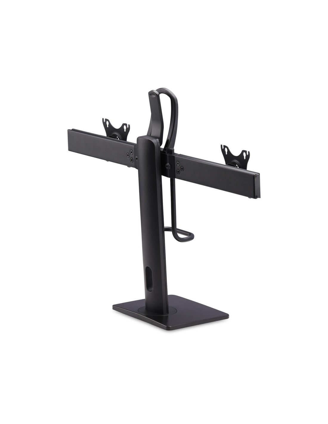 Il design di questo supporto per doppio schermo con barra trasversale garantisce un allineamento orizzontale stabile degli schermi, rendendolo ideale per monitor senza cornice o con cornice sottile. Ciò contribuisce a creare un'area di visione immersiva e senza soluzione di continuità. I supporti VESA possono scorrere lungo la traversa, consentendo una maggiore versatilità nelle regolazioni visive ed ergonomiche.