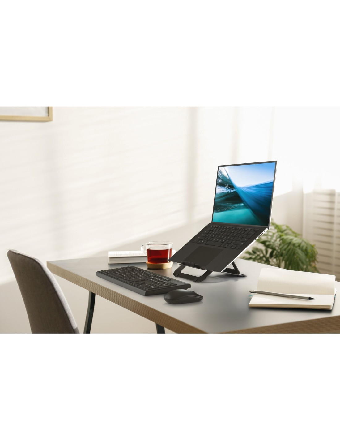 Ottimizza il comfort della workstation a casa o in viaggio, con la base per laptop in alluminio regolabile EQ con design ergonomico. Questo supporto versatile presenta opzioni di sollevamento maggiori rispetto ai sollevatori standard e offre cinque impostazioni di altezza e angolo regolabili, per elevare il laptop o lo schermo del tablet a una posizione di visualizzazione comoda. Consigliato dal German IGR Institute for Health and Ergonomics, la sua struttura resistente in alluminio è adatta a dispositivi da 10 a 17 e fino a 3 kg (6;6 lb). Leggero e portatile, questo supporto è pieghevole, per migliorare gli spostamenti e completare qualsiasi impostazione. Le imbottiture in alluminio antiscivolo in silicone garantiscono la sicurezza al tuo dispositivo, mentre i canali di dissipazione del calore migliorano la longevità del dispositivo. Realizzato in alluminio* 100% riciclabile e spedito in imballaggio certificato FSC®.
