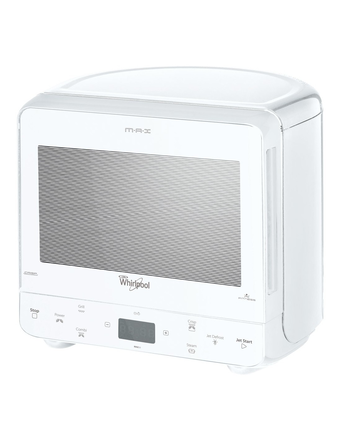 Whirlpool MAX 39 FW. Posizionamento dell'apparecchio: Superficie piana, Tipo di prodotto: Microonde combinato, Capacità interna: 13 L. Carico di collegamento: 1500 W, Tensione di ingresso AC: 230 V, Frequenza di ingresso AC: 50 Hz. Larghezza: 392 mm, Profondità: 350 mm, Altezza: 360 mm
