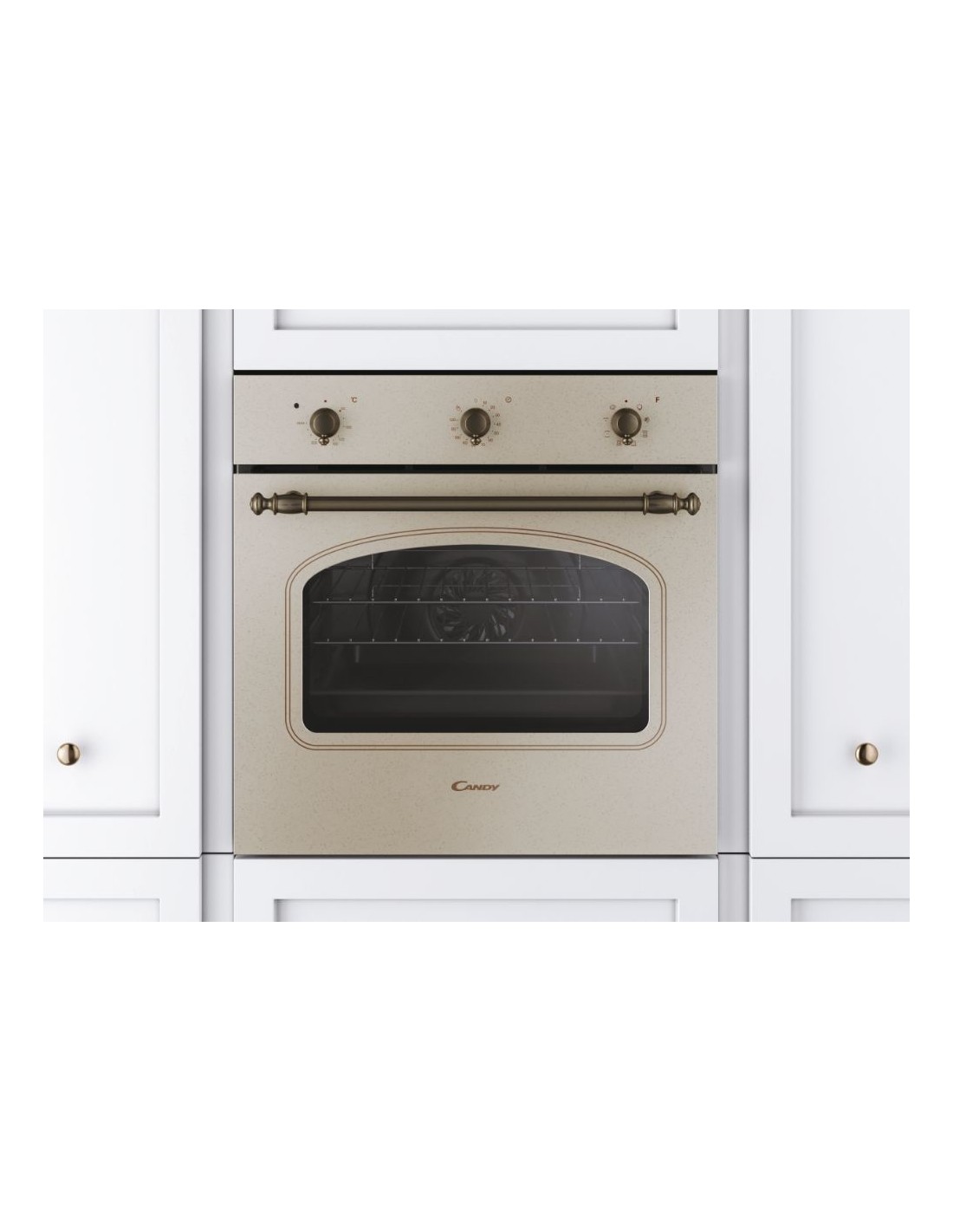 Candy Classic FCC603NAV. Dimensione del forno: Media, Tipo di forno: Forno elettrico, Capacità interna forno totale: 65 L. Posizionamento dell'apparecchio: Da incasso, Colore del prodotto: Avena, Tipo di controllo: Manopola. Tipo di timer: Meccanico, Modalità di impostazione del timer: Tempo di fine cottura, Timer. Classe efficienza energetica: A+, Consumo energetico (convenzionale): 0,89 kWh, Consumo energetico (convezione forzata): 0,67 kWh. Larghezza del compartimento: 56 cm, Profondità del compartimento: 56 cm, Altezza del compartimento: 59 cm