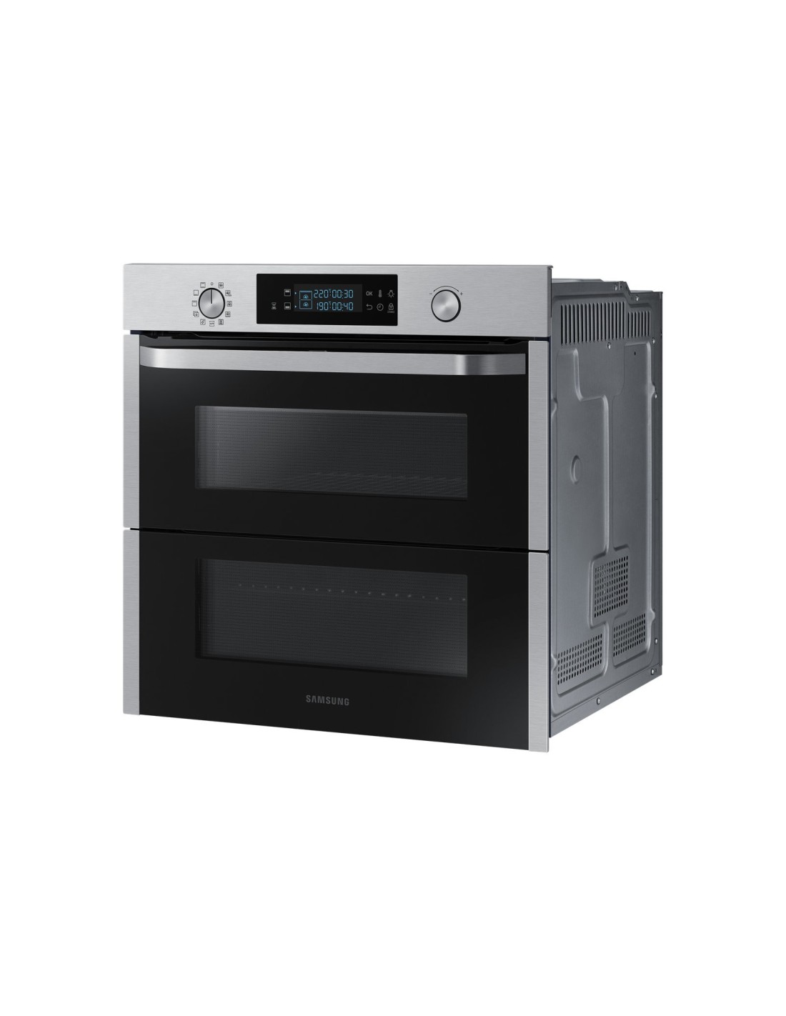 Samsung Dual Cook Flex. Dimensione del forno: Media, Tipo di forno: Forno elettrico, Capacità interna forno totale: 75 L. Dimensione del forno 2: Piccola, Capacità netta del forno 2: 32 L, Range del termostato del forno 2: 40 - 250 °C. Posizionamento dell'apparecchio: Da incasso, Colore del prodotto: Stainless steel, Tipo di controllo: Manopola, Touch. Tipo di orologio: Elettronico, Tipo di timer: Digitale, Modalità di impostazione del timer: Tempo di cottura, Tempo di fine cottura. Classe efficienza energetica: A+, Consumo energetico (convenzionale): 1,05 kWh, Consumo energetico (convezione forzata): 0,71 kWh