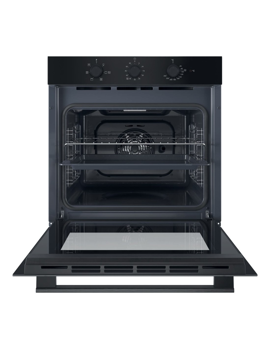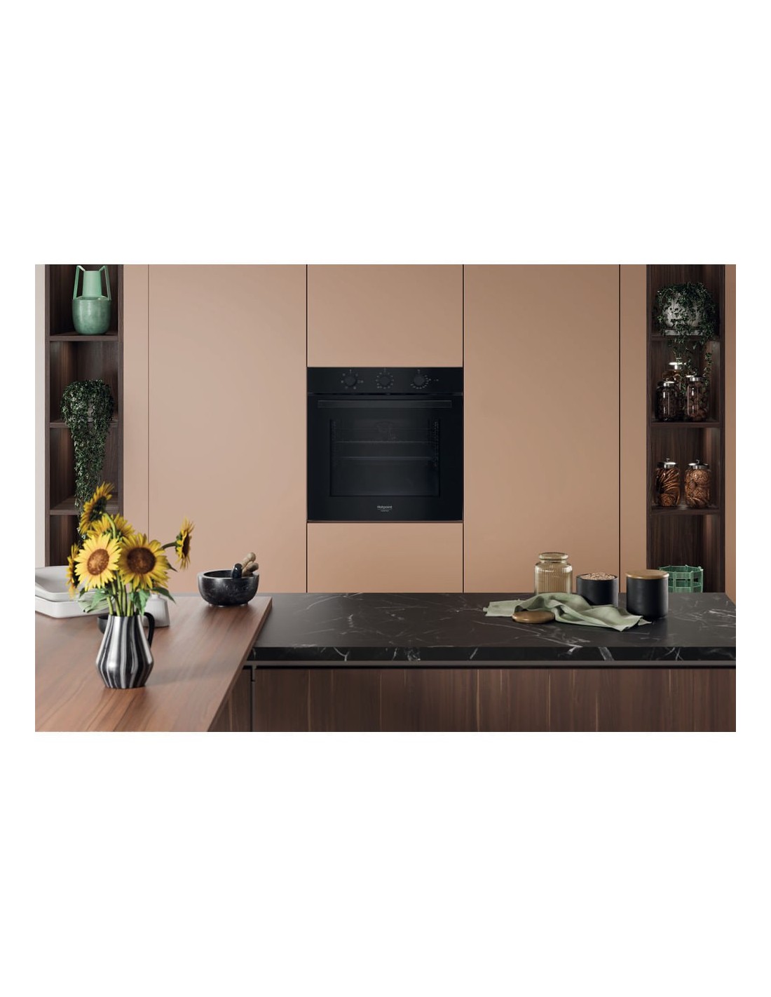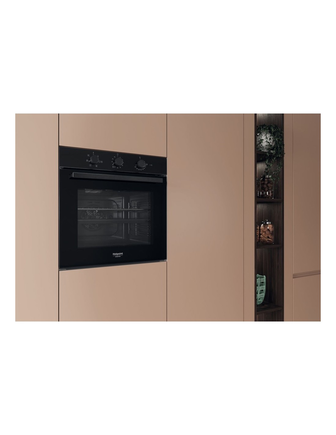 Hotpoint Ariston Forno da incasso HAO 435H B. Dimensione del forno: Media, Tipo di forno: Forno elettrico, Capacità interna forno totale: 71 L. Posizionamento dell'apparecchio: Da incasso, Colore del prodotto: Nero, Tipo di controllo: Manopola, Touch. Tipo di timer: Digitale. Classe efficienza energetica: A, Consumo energetico (convenzionale): 0,99 kWh, Consumo energetico (convezione forzata): 0,81 kWh. Quantità lampade: 1 lampada(e), posizione delle illuminazioni: Anteriore sinistra