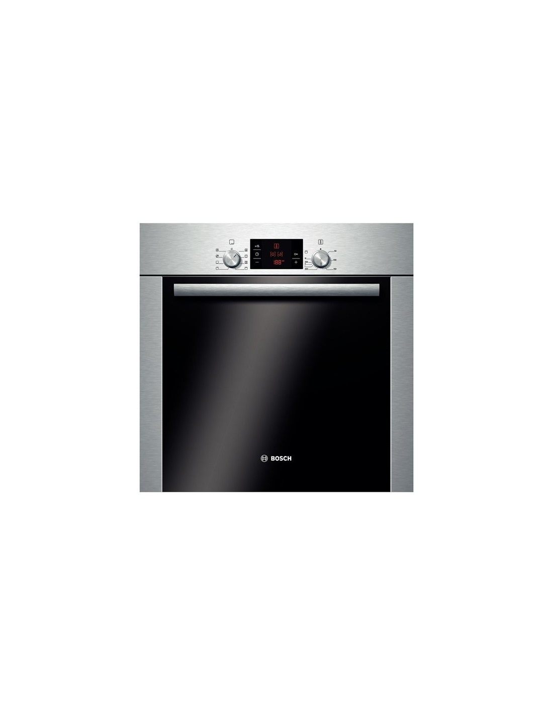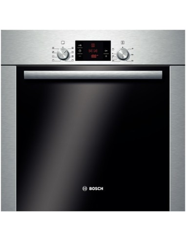 Bosch HBA22B250E. Tipo di forno: Forno elettrico, Capacità interna forno totale: 62 L, Capacità netta del forno: 62 L. Colore del prodotto: Acciaio inossidabile, Tipo di controllo: Manopola, Posizione di controllo: Frontale superiore. Tipo di timer: Digitale. Classe efficienza energetica: A, Consumo energetico (convenzionale): 0,85 kWh, Consumo energetico (convezione forzata): 0,79 kWh. Larghezza: 595 mm, Profondità: 515 mm, Altezza: 595 mm