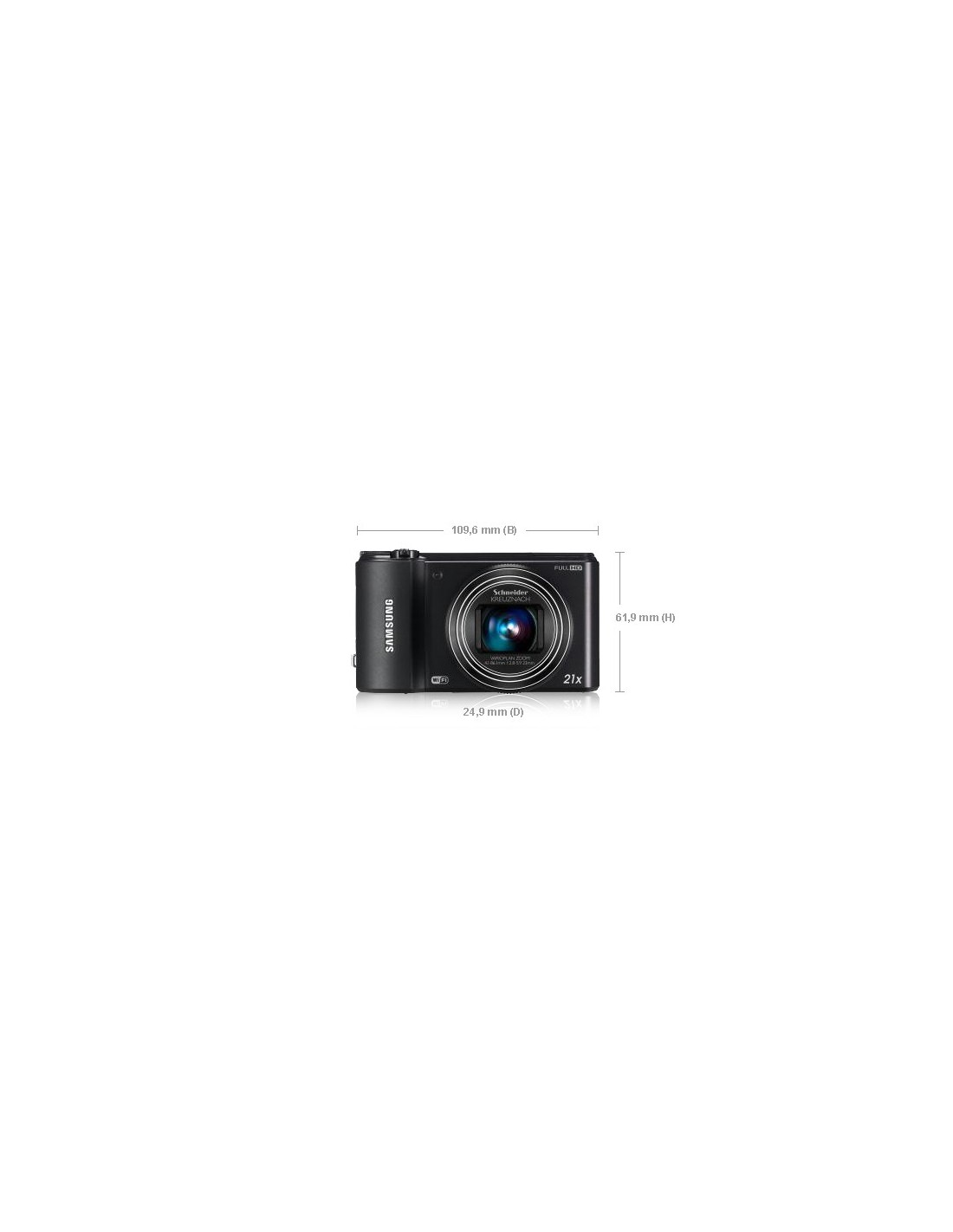 Samsung WB WB850F. Tipologia fotocamera: Fotocamera compatta, Megapixel: 16,8 MP, Dimensione del sensore di immagine: 1/2.3", Tipo sensore: CMOS, Risoluzione massima immagine: 4608 x 3456 Pixel. Sensibilità ISO (max): 3200. Zoom ottico: 21x, Zoom digitale: 4x, Lunghezza focale: 4.1 - 86.1 mm. Wi-Fi. Tipologia HD: Full HD, Risoluzione massima video: 1920 x 1080 Pixel. Dimensioni schermo: 7,62 cm (3"). PictBridge. Colore del prodotto: Nero