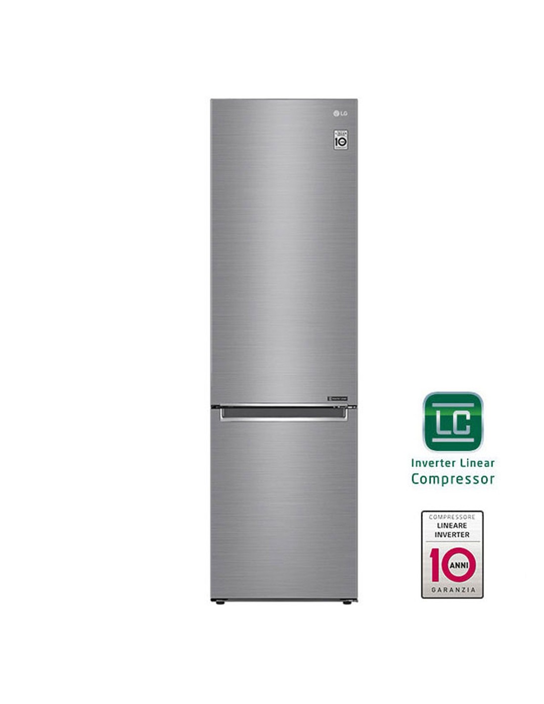 LG GBB62PZGFN. Capacità netta totale: 384 L. Cerniera porta: Destra, Tipo di display: LED. Classe climatica: SN-T, Emissione acustica: 36 dB. Capacità netta frigorifero: 277 L, No Frost (frigorifero), Luce interna. Capacità netta congelatore: 107 L, Capacità di congelamento: 14 kg/24h, No Frost (congelatore). Compartimento zona fresca. Classe efficienza energetica: D, Consumo energetico annuo: 193 kWh. Colore del prodotto: Acciaio inossidabile