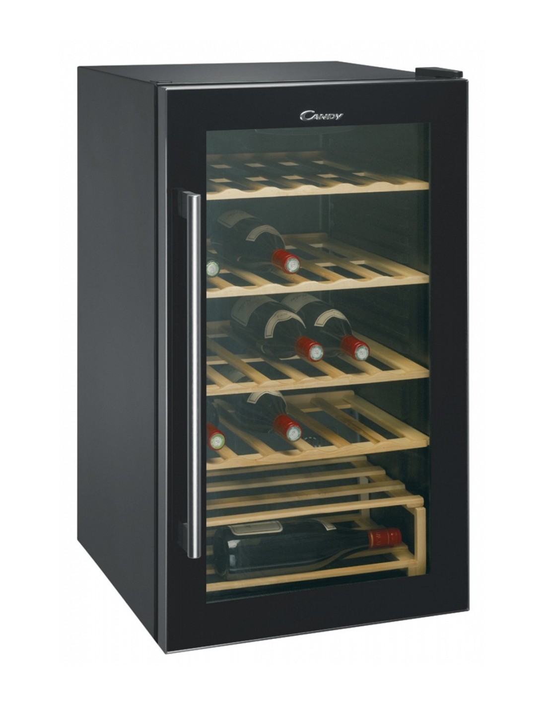 Candy CCV 200 GL. Posizionamento dell'apparecchio: Libera installazione, Colore struttura: Nero, Colore interno: Nero. Capacità bottiglie: 40 bottiglia/bottiglie, Tipo di prodotto: Cantinetta vino con compressore, Intervallo temperatura (zona 1): 7 - 19 °C. Consumo energetico annuo: 197 kWh, Consumo d'energia: 0,54 kWh/24h, Tensione di ingresso AC: 220 - 240 V. Tipo di lampada: LED. Larghezza: 500 mm, Profondità: 590 mm, Altezza: 840 mm